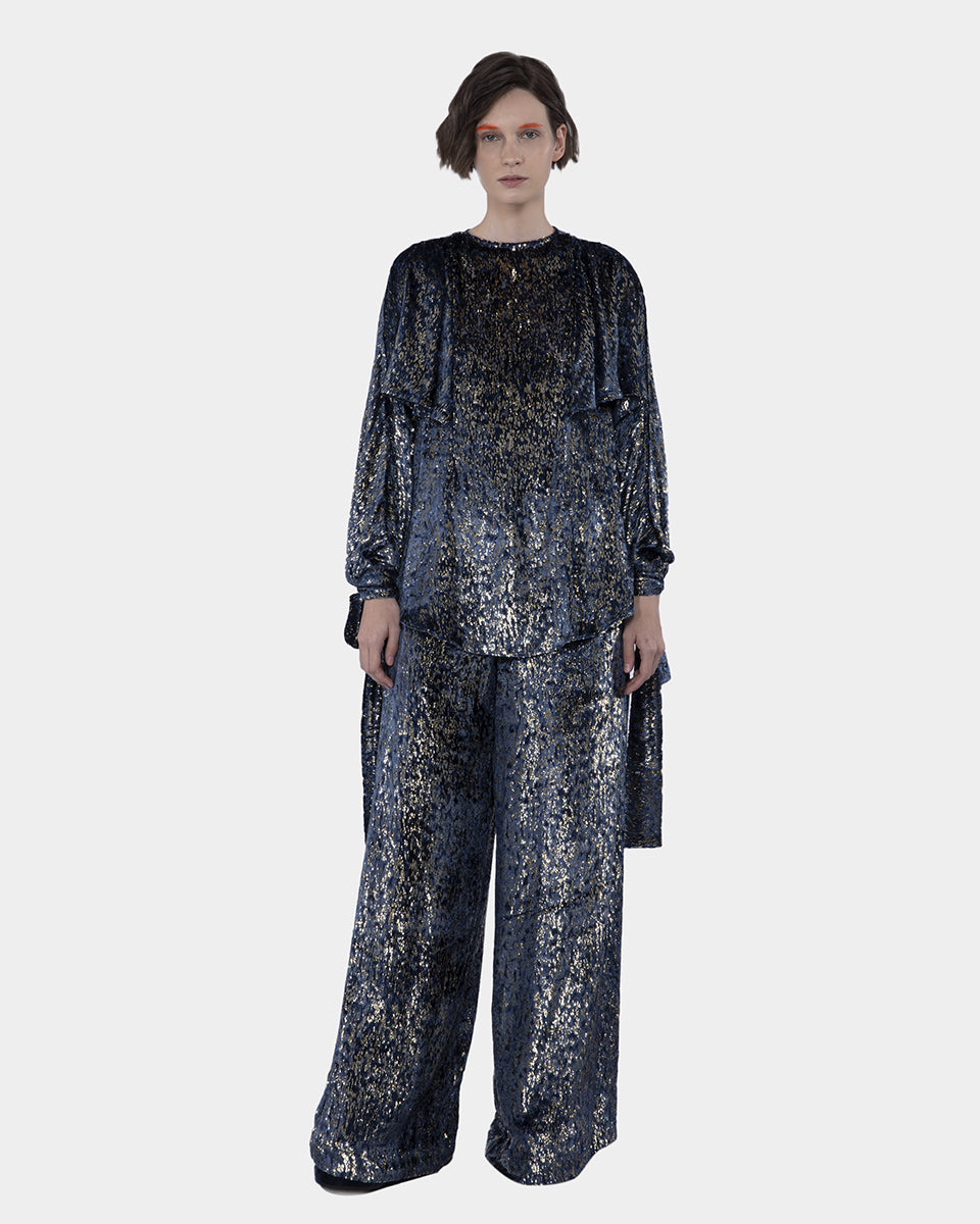 SHRENA VELVET FIL COUPÉ WING AND CUT OUT SLEEVE TOP