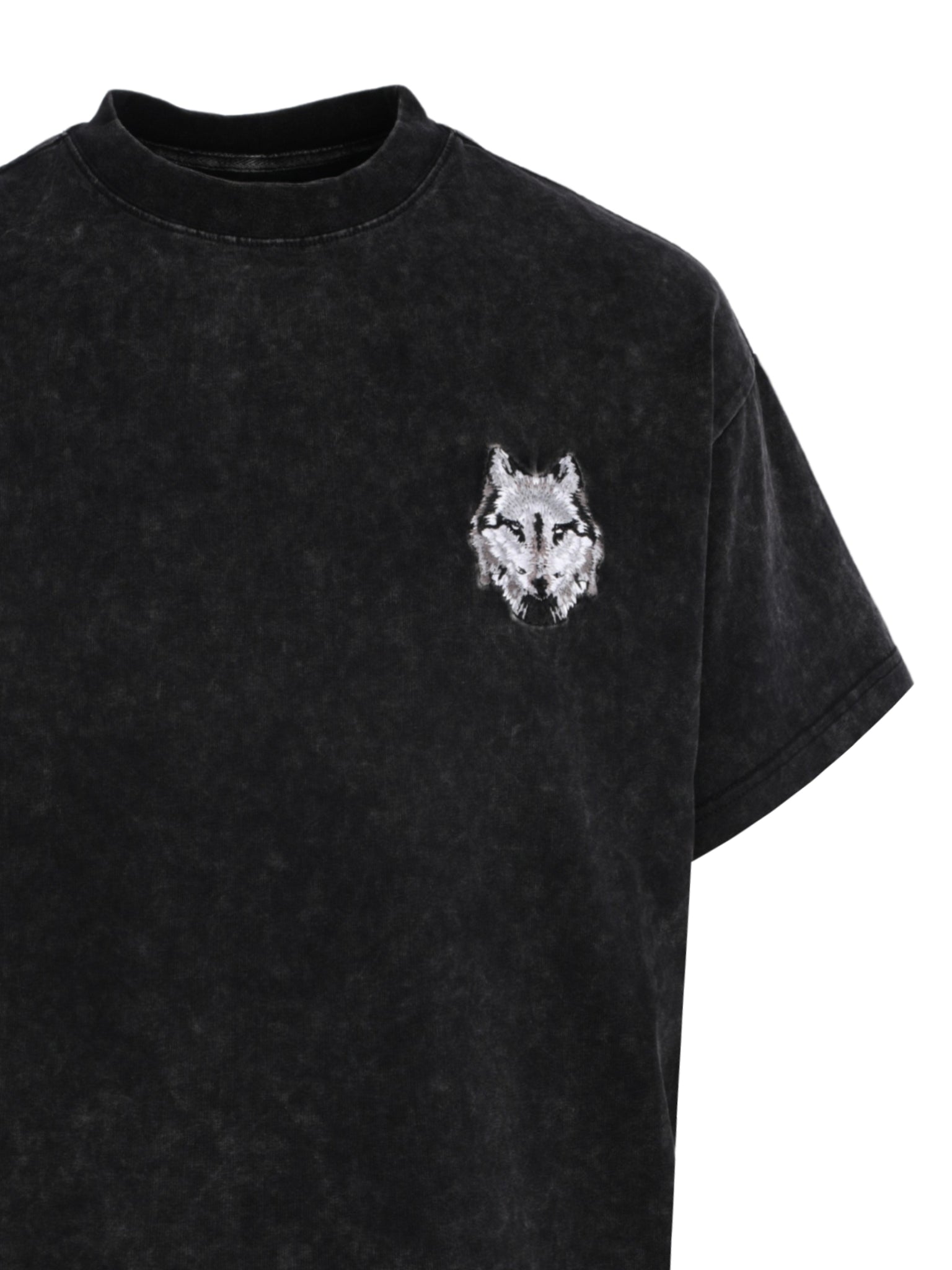 CENMAR WASHED GRAY T-SHIRT WITH WOLF EMBROIDERY