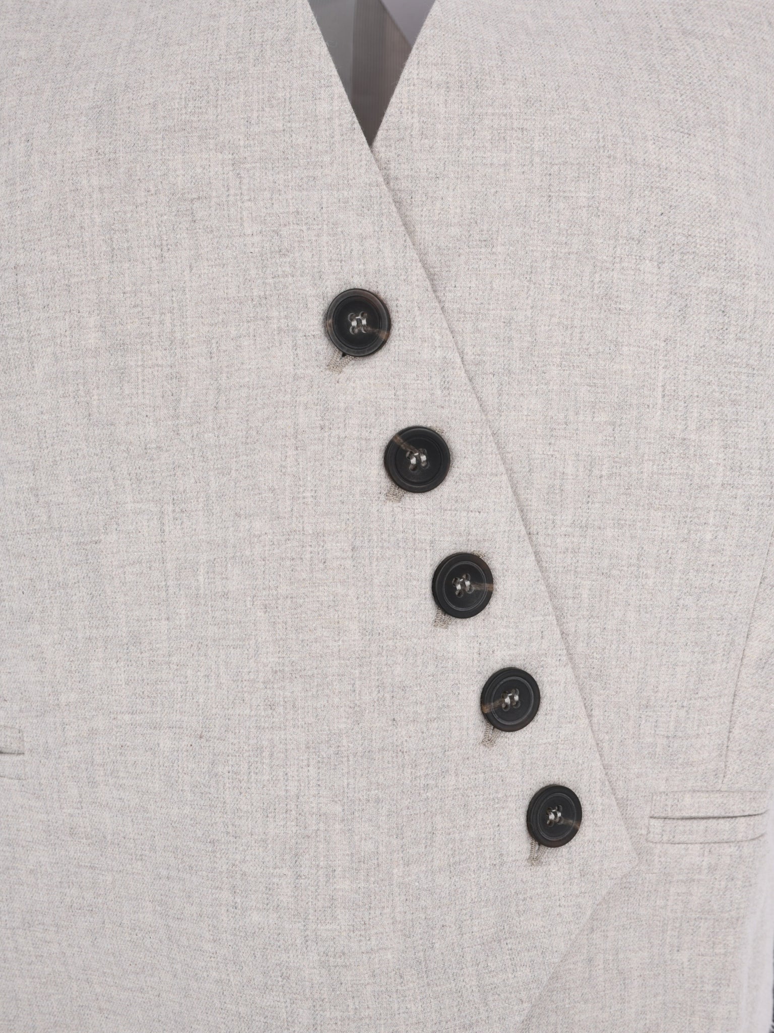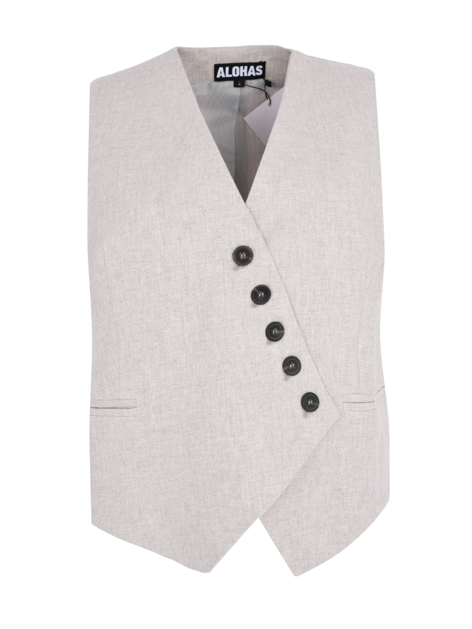 Stay stylish and comfortable with the Totti Cream Vest by Alohas. Crafted from 100% polyester, this grey vest offers a lightweight, versatile layering option perfect for modern wardrobes.