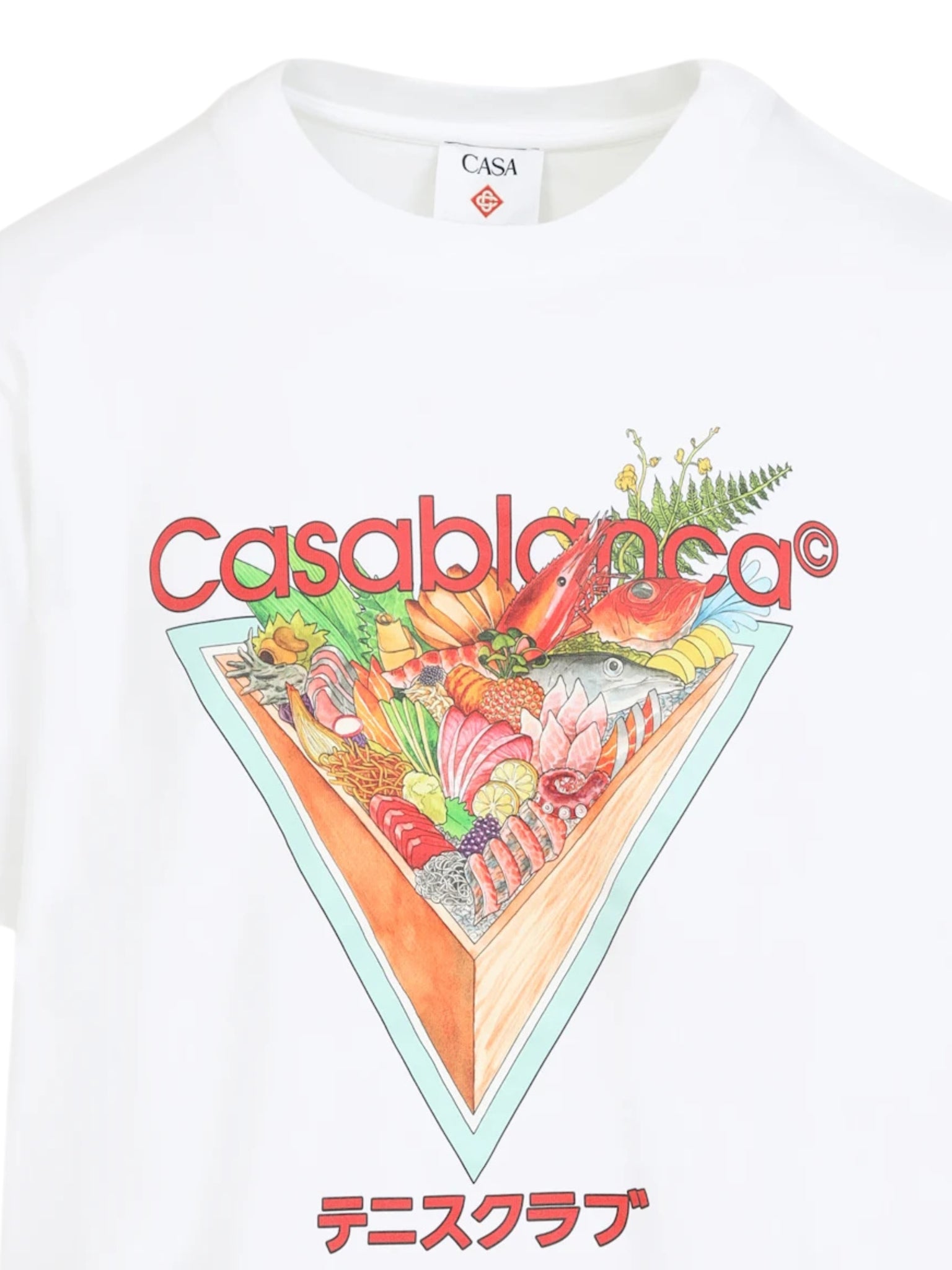 A stylish and eco-friendly T-shirt from Casablanca, featuring a bold Tennis Club icon print, crafted in 100% organic cotton for comfort and sustainable style in Saudi Arabia.