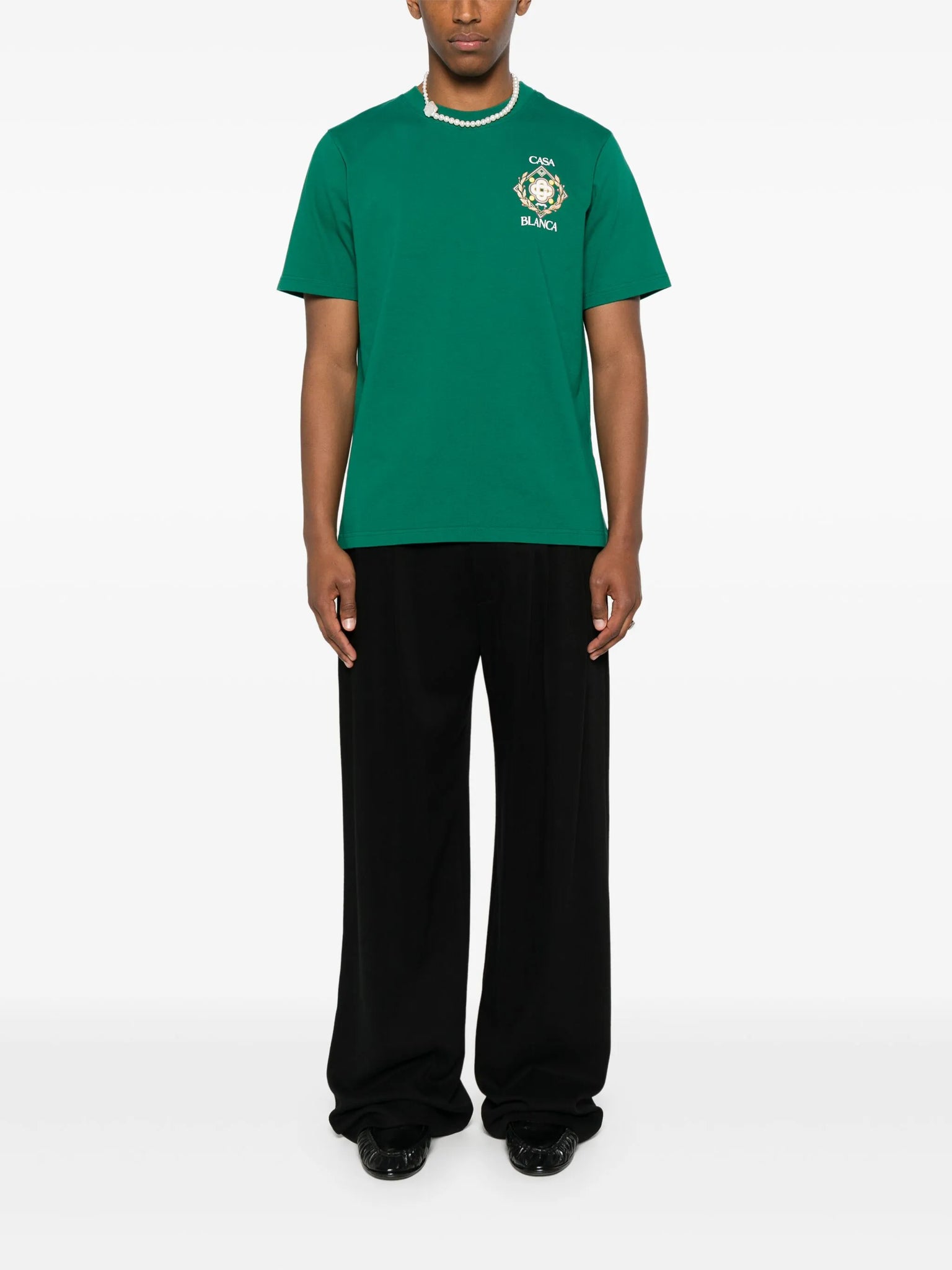 Sport-inspired and artistically refined, the Championship Diamond T-shirt by Casablanca blends luxury and leisurewear through seasonal artwork and consciously sourced materials.