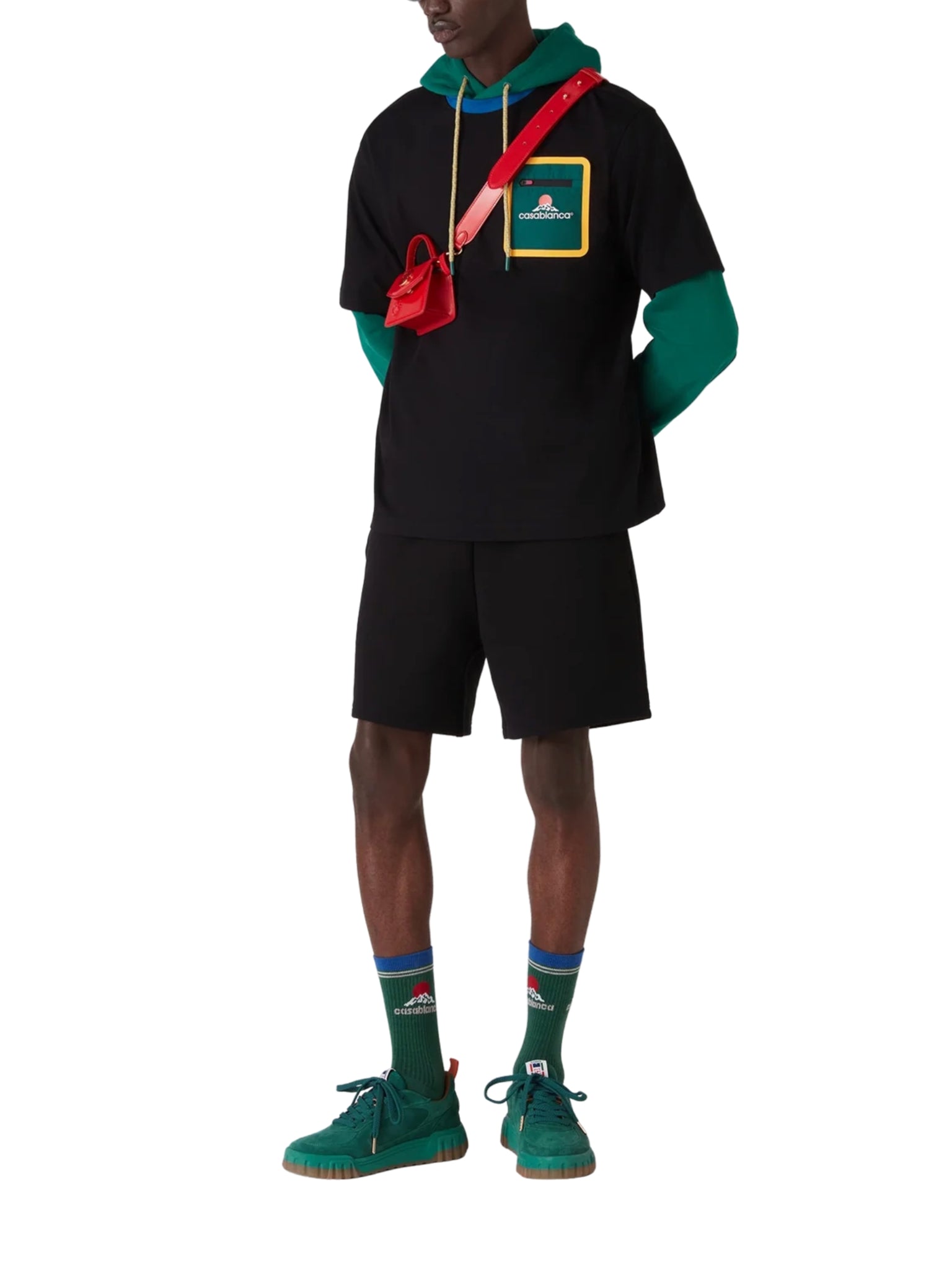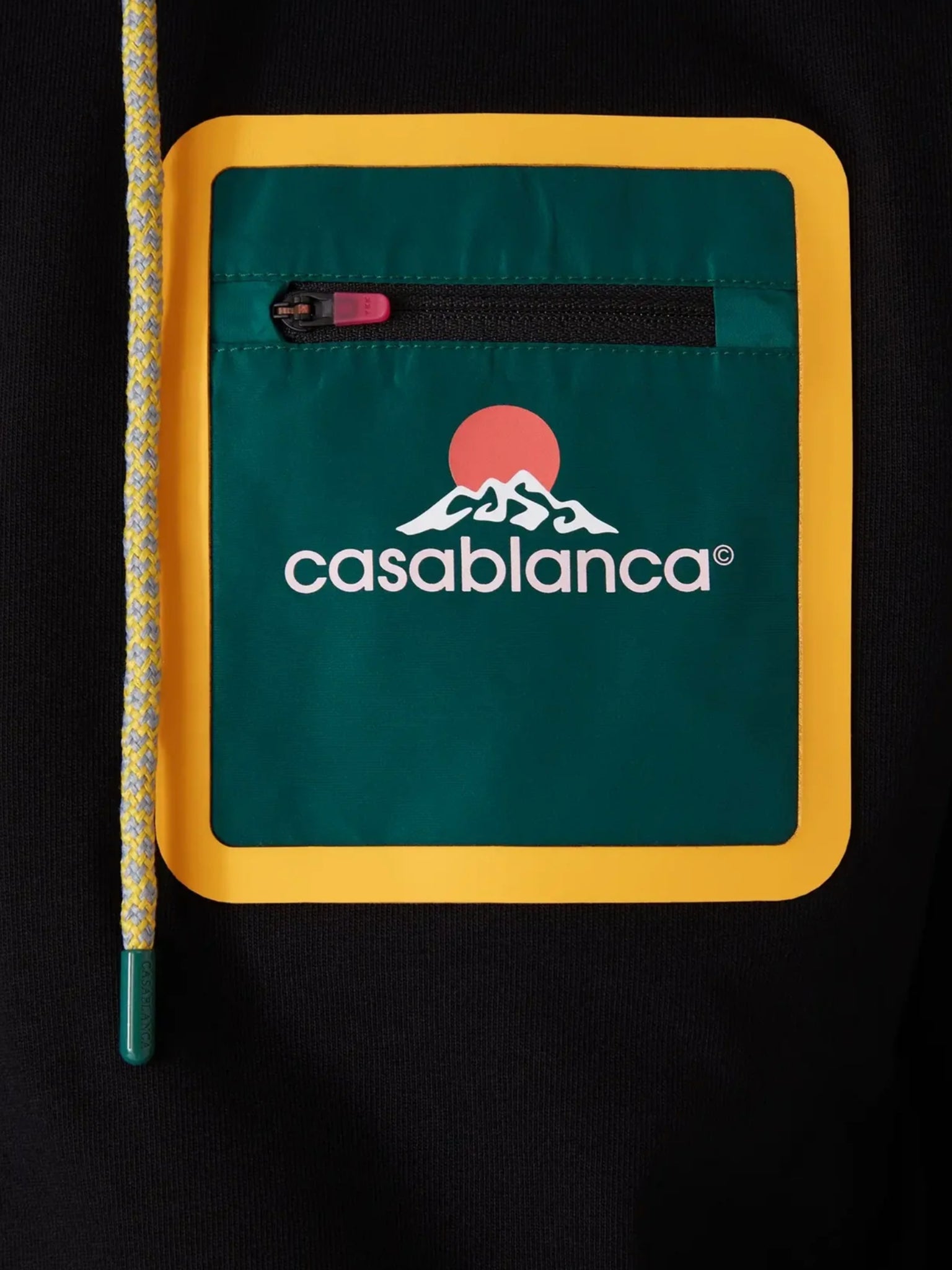 • Technical breast pocket with zip closure accented in Casablanca’s signature house colours