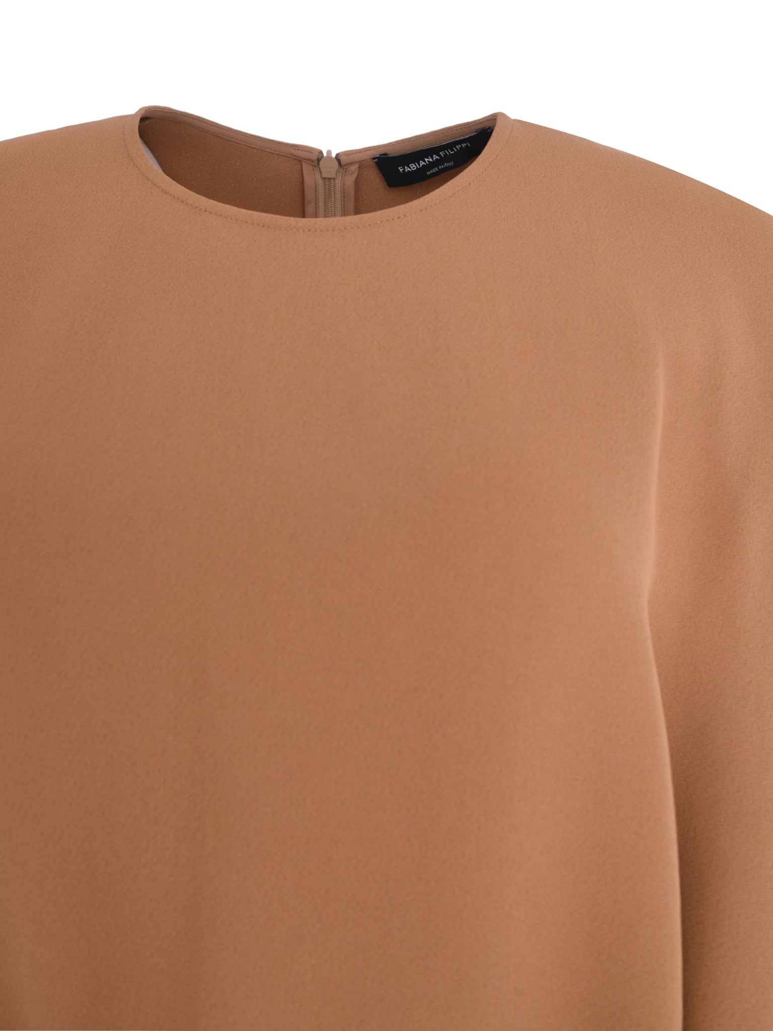 Minimalist structure with graceful movement. The Cady Sleeveless Dress by Fabiana Filippi is designed in a soft pastel brown tone, elevated by a fluid side panel that adds quiet drama to its clean silhouette.