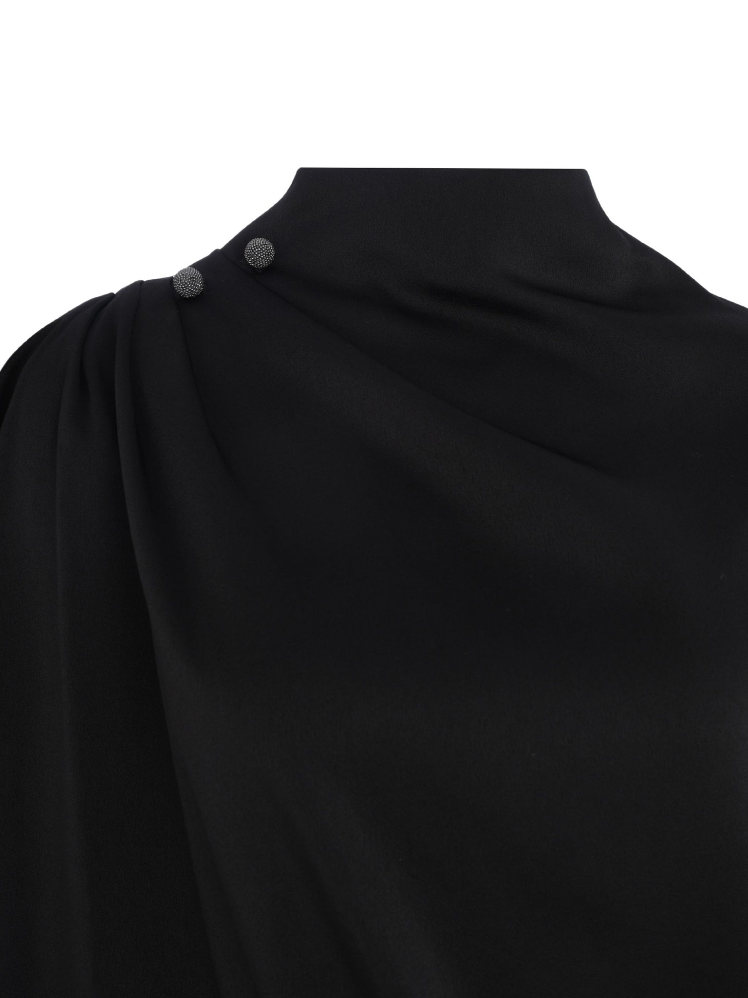 • Draped silhouette in luxurious Enver satin for graceful movement