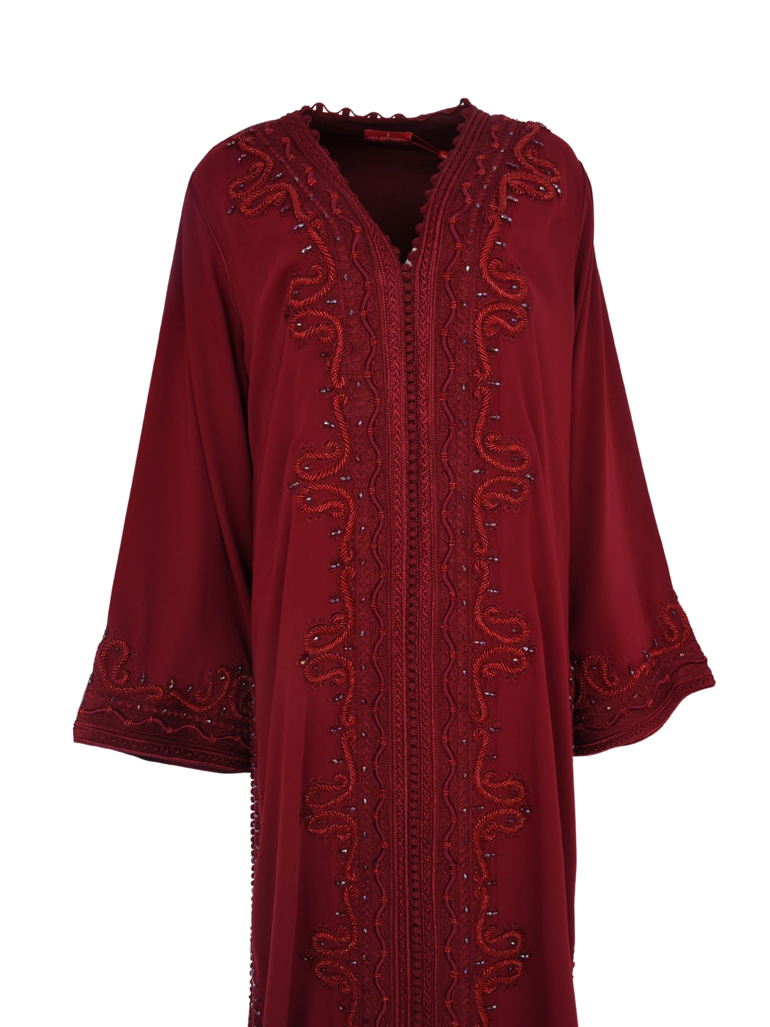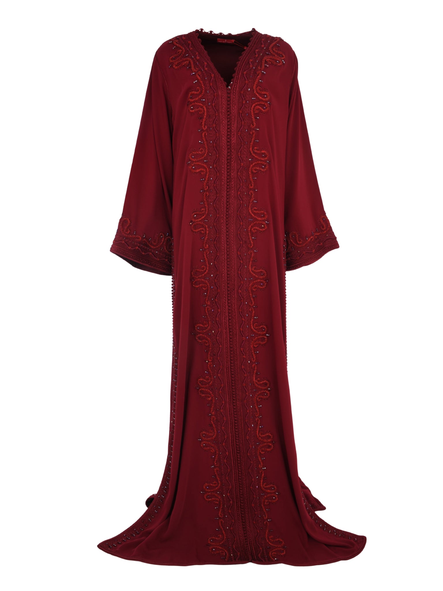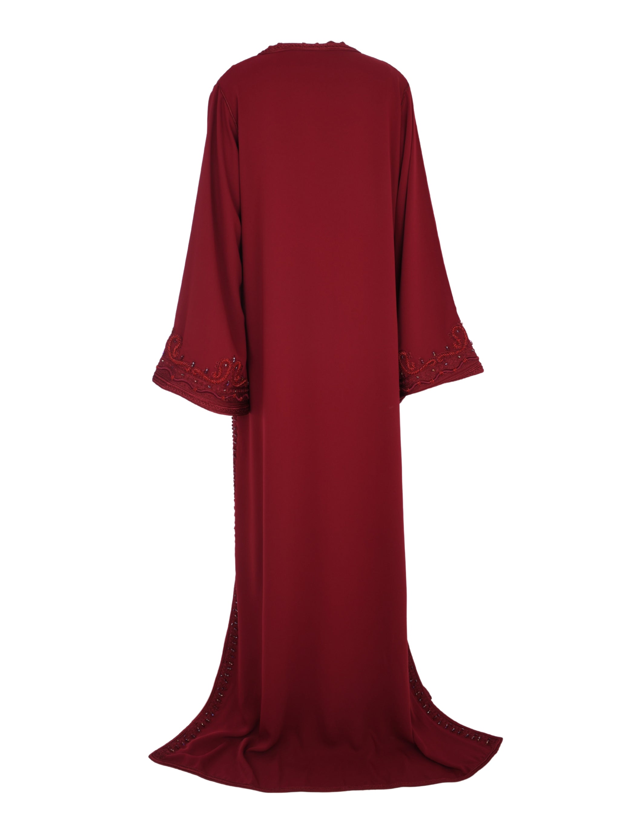 تصميم قفطان يجسّد الأناقة الجريئة والرقي الخالد. يتميّز بقصّة انسيابية راقية، حيث يقدّم هذا القفطان باللون الأحمر حضورًا لافتًا ومصقولًا، ليكون خيارًا مثاليًا للمناسبات الراقية والتجمعات المميّزة.