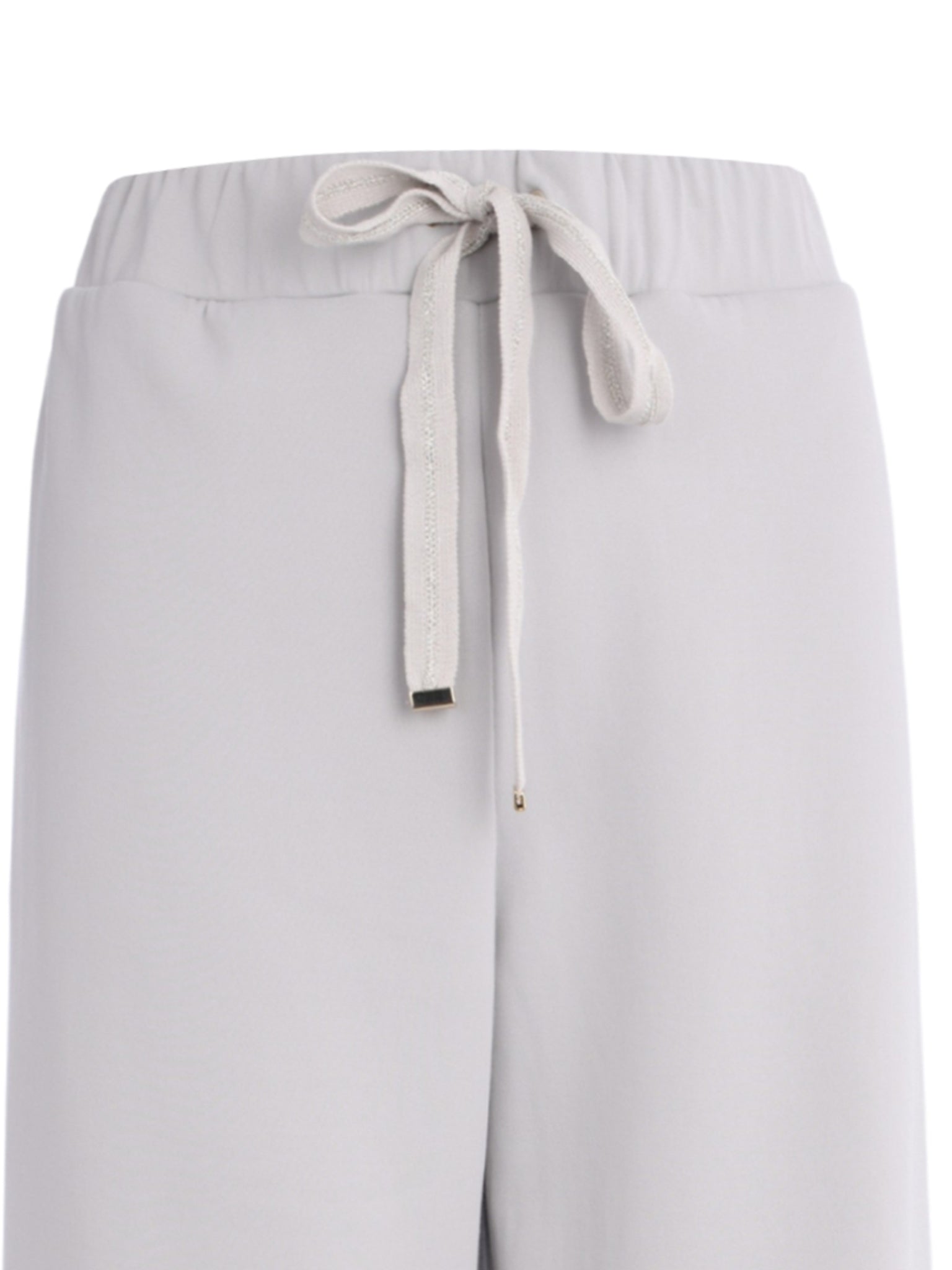 Elevate your off-duty style with the effortless luxury of these light grey jersey track pants by Lorena Antoniazzi. Made in Italy, they blend athletic comfort with a refined aesthetic—perfect for both lounging and stylish city outings.