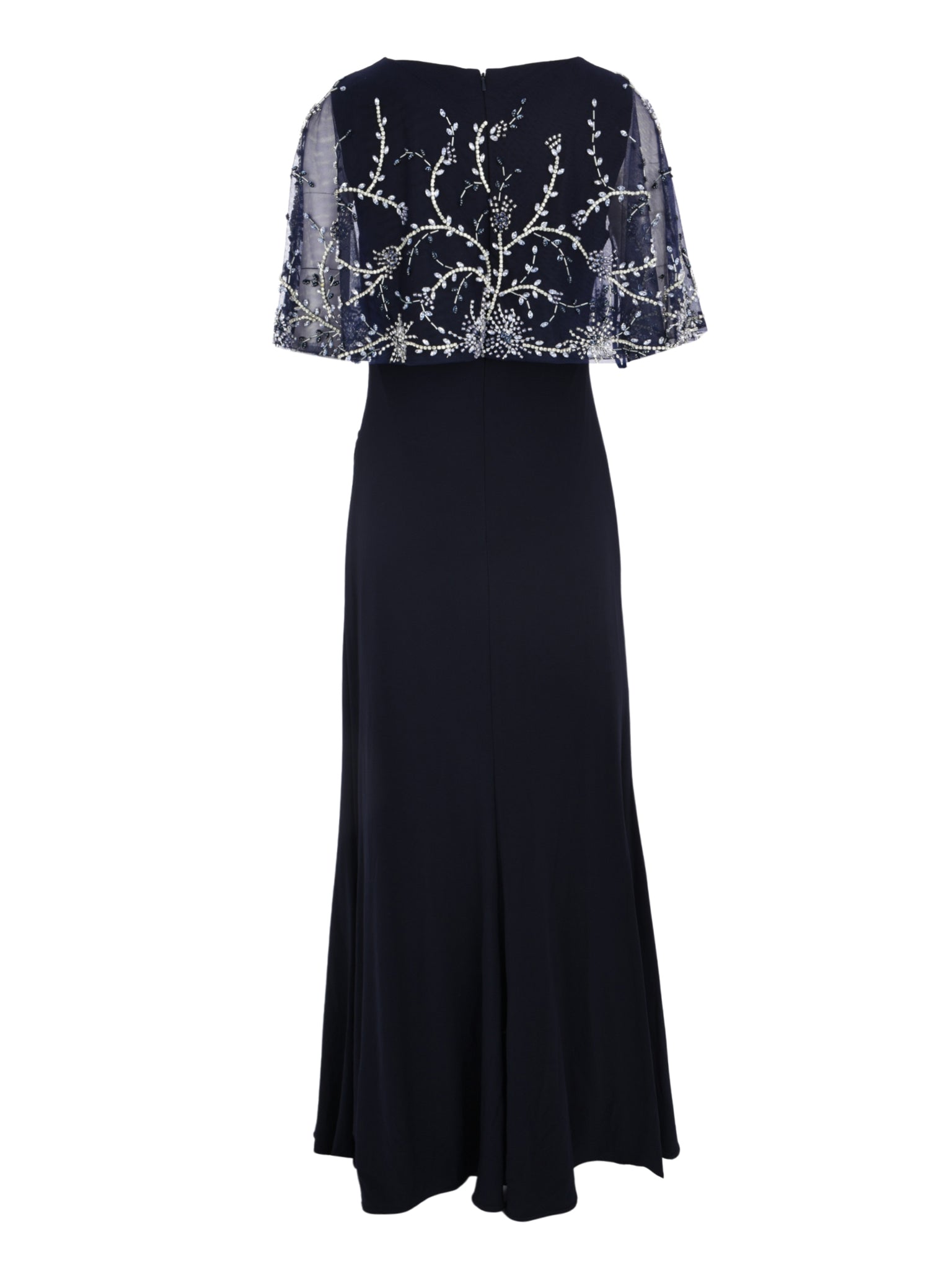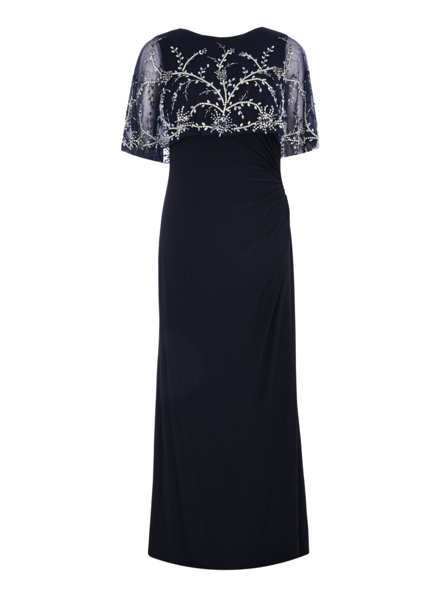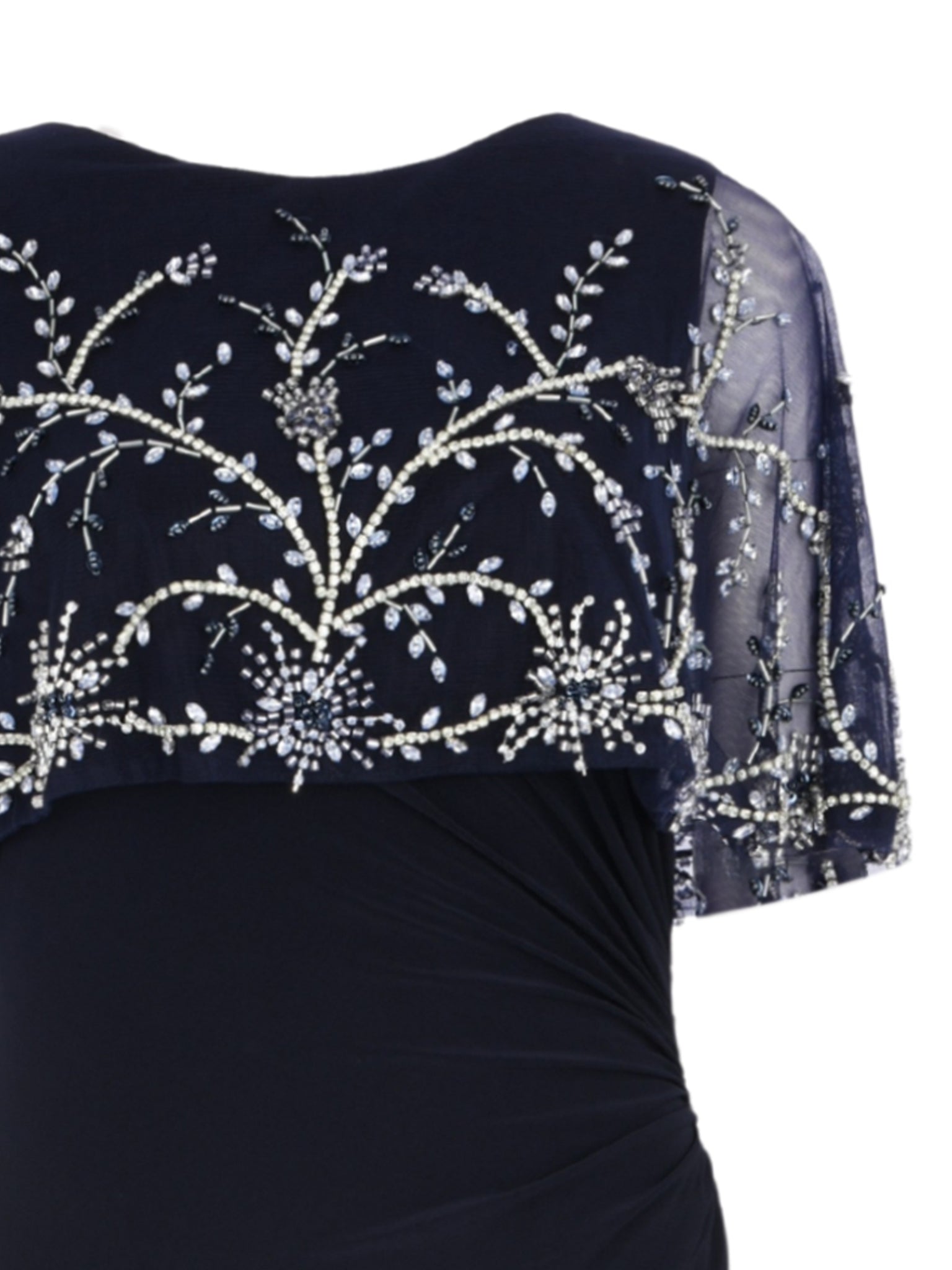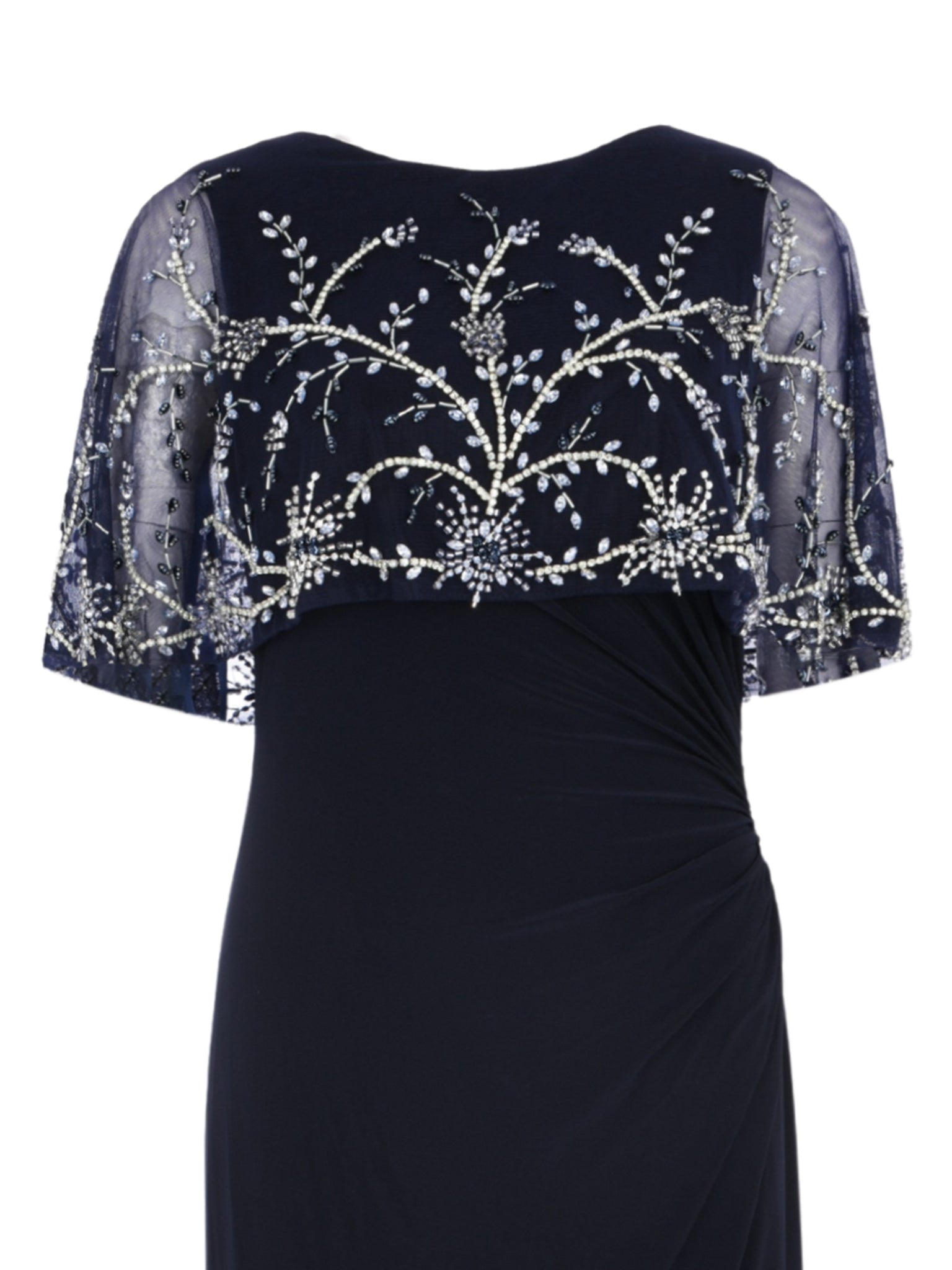 Includes a delicately beaded shawl for added glamour