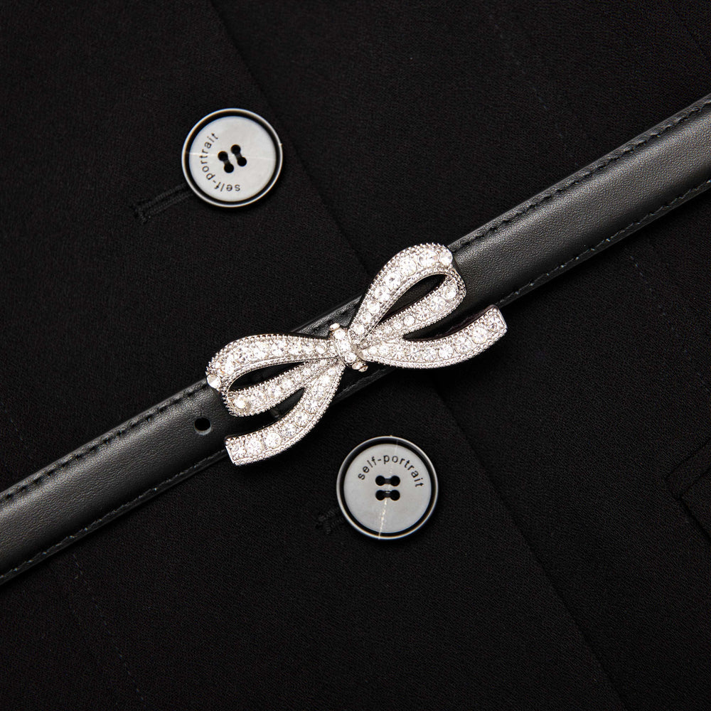 Effortlessly polished and playfully feminine, the Black Long Sleeve Contrast Chiffon Midi Dress by Self-Portrait is the definition of modern elegance. A structured crepe bodice meets a flowing cream chiffon skirt, brought together by a sparkling diamanté bow belt.