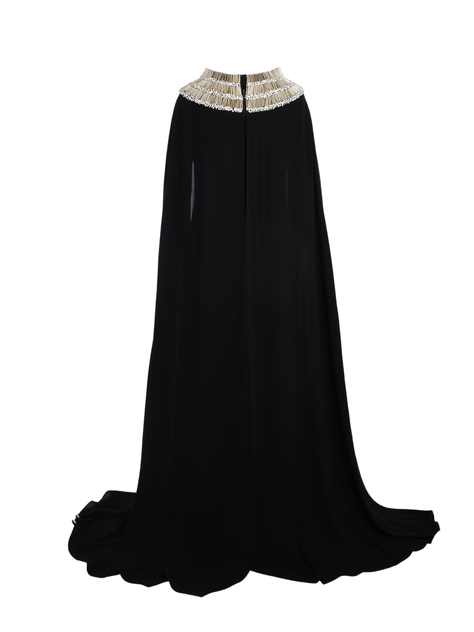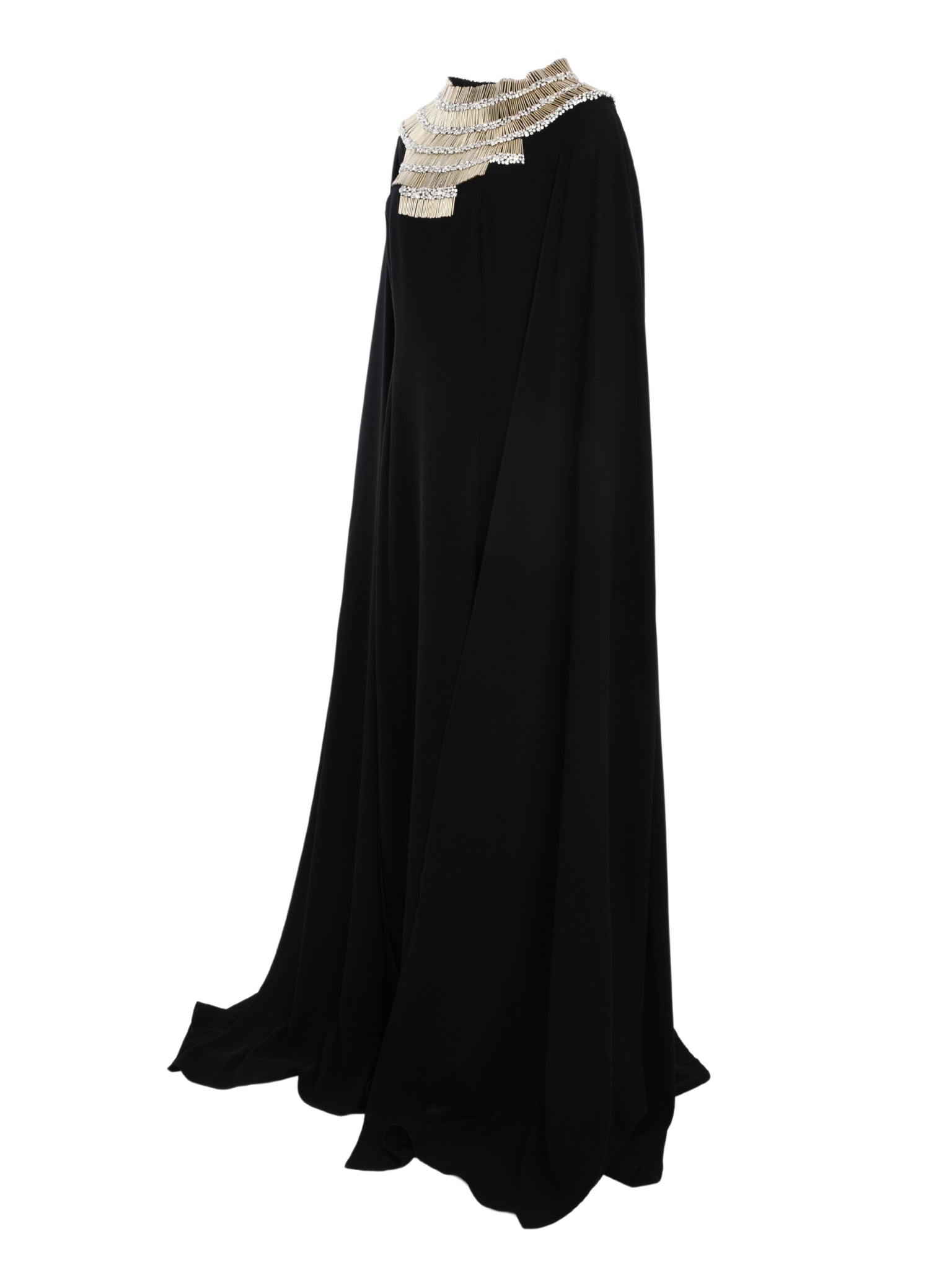 Elegant and refined, this Jean Louis Sabaji crepe dress showcases the designer’s signature attention to detail with a beautifully embroidered neckline. Perfect for evening occasions in Saudi Arabia, it offers timeless sophistication with a modern edge.