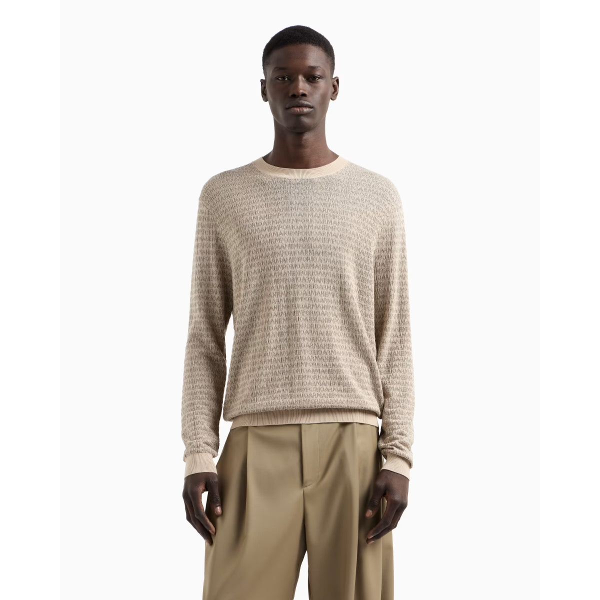 Crafted for the modern gentleman with an eye for conscious luxury, the Emporio Armani Pullover redefines comfort with an eco-minded approach. This elegant crew-neck jumper is made from a refined blend of Lyocell, cotton, and mulberry silk, offering exceptional softness and breathability. The standout feature is its all-over logo lettering in intarsia knit, delivering a bold yet tasteful expression of brand identity.