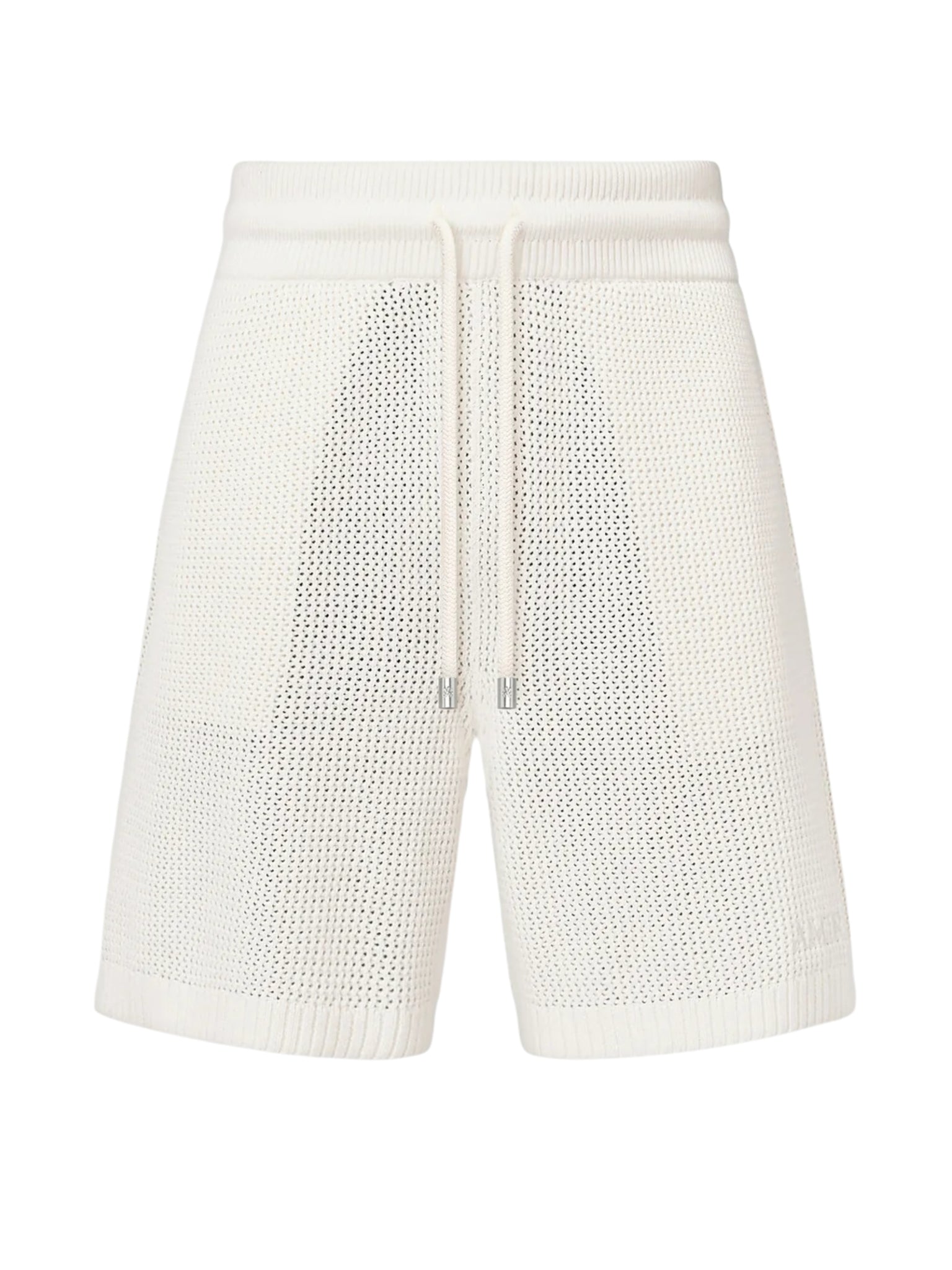 Light, breathable, and effortlessly stylish — the AMIRI Crochet Mesh Shorts in ivory blend luxury craftsmanship with casual comfort, highlighted by delicate monochrome embroidery.