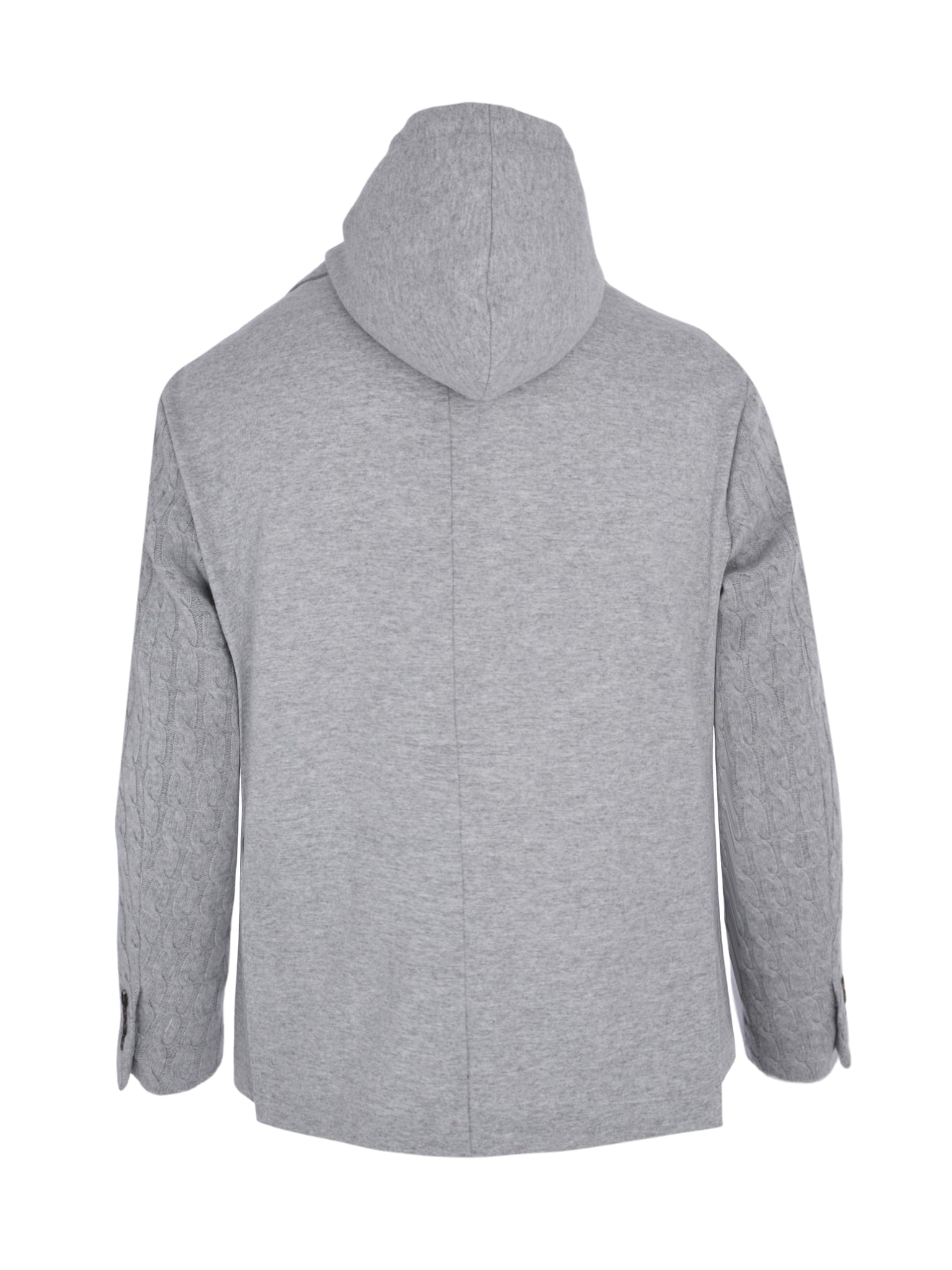 A sophisticated hooded single-breasted jacket, crafted from a luxurious wool-cashmere blend, perfect for stylish warmth and elegance in the Saudi climate.