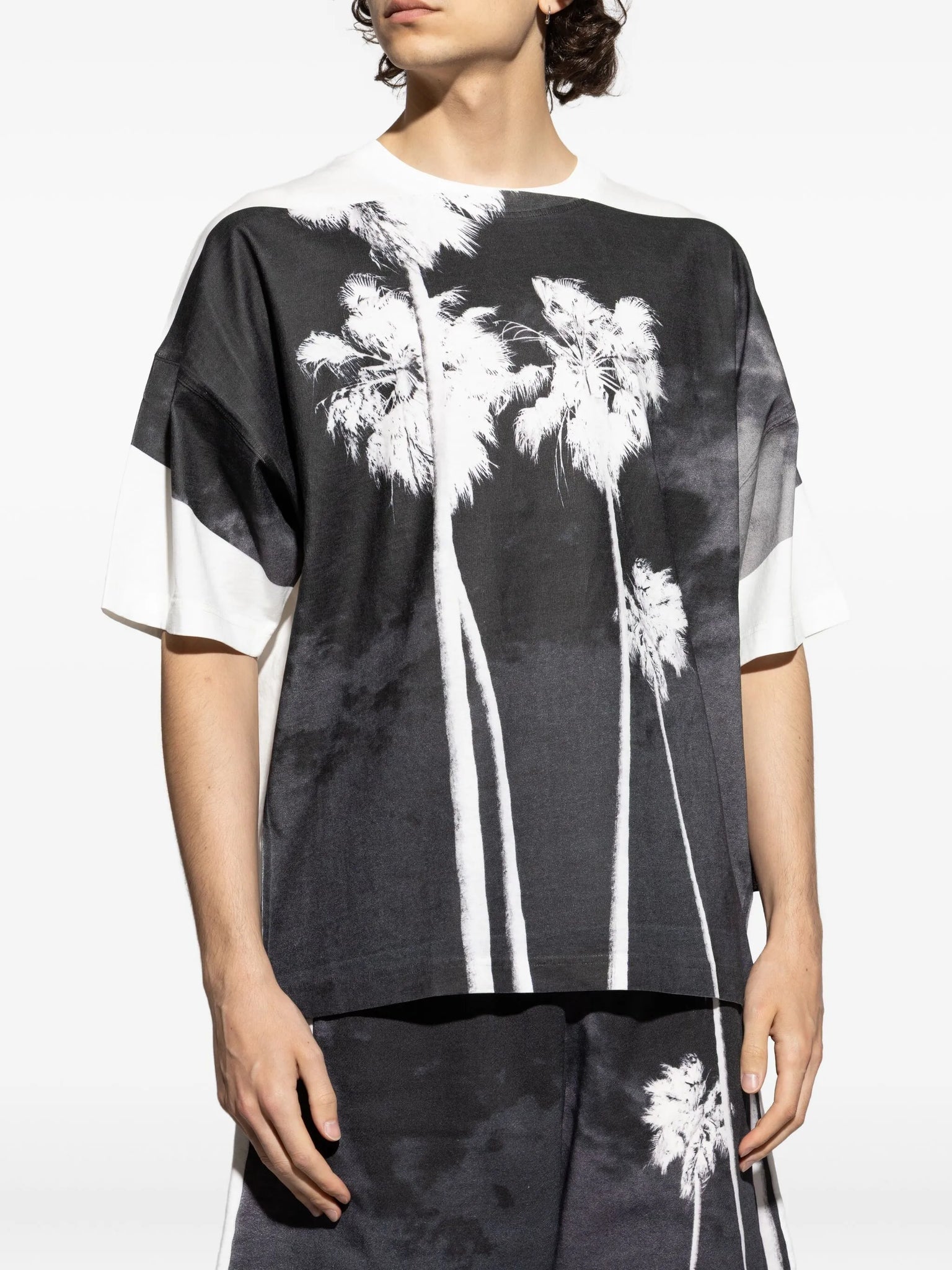 • Eye-catching palm tree graphic print on the front