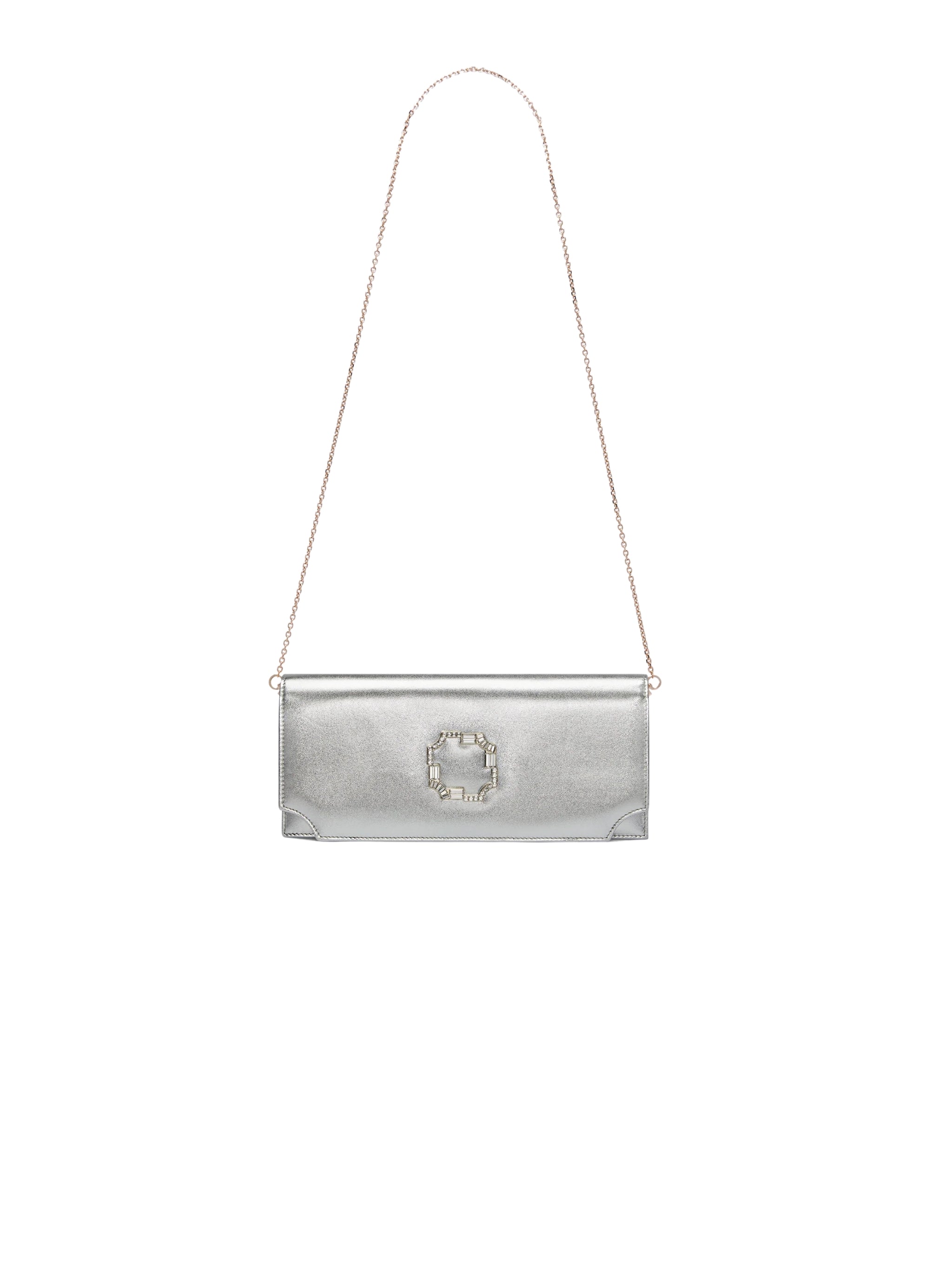 Bold yet refined, the Vivien Clutch in Silver by Malone Souliers is a show-stopping accessory designed for glamorous evenings. Crafted entirely from shimmering metallic nappa, it exudes luxury and elegance with every detail — the perfect finishing touch for formal events, weddings, or high-end occasions.