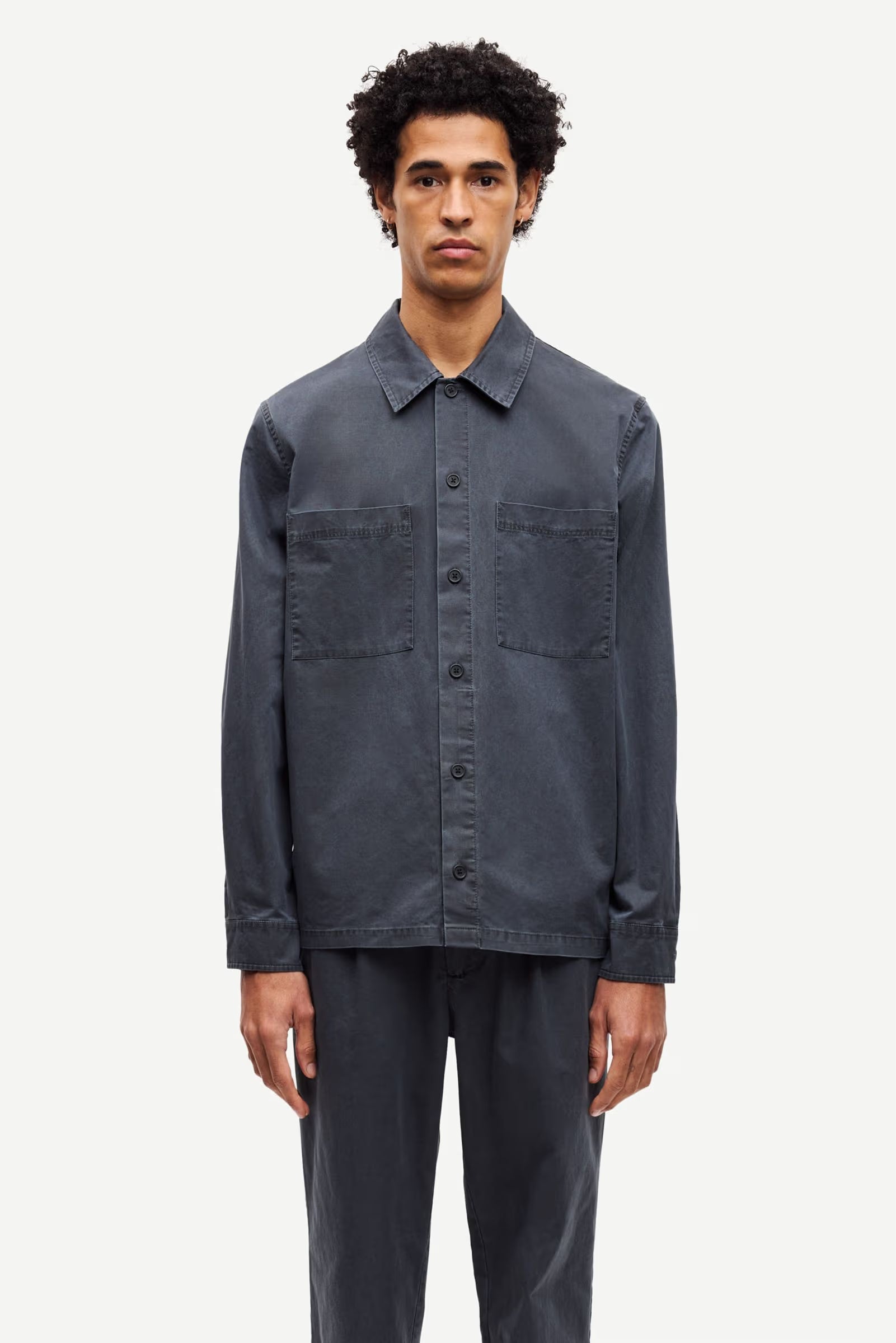 The SATAKA JO overshirt is a timeless wardrobe staple with a clean, structured look. Cut in a regular fit, it features a button-up front, snap-buttoned cuffs, and front patch pockets for a utility-inspired finish. Made entirely from organic cotton, it offers breathable comfort and sustainable appeal ideal as a lightweight layer or stand-alone shirt.