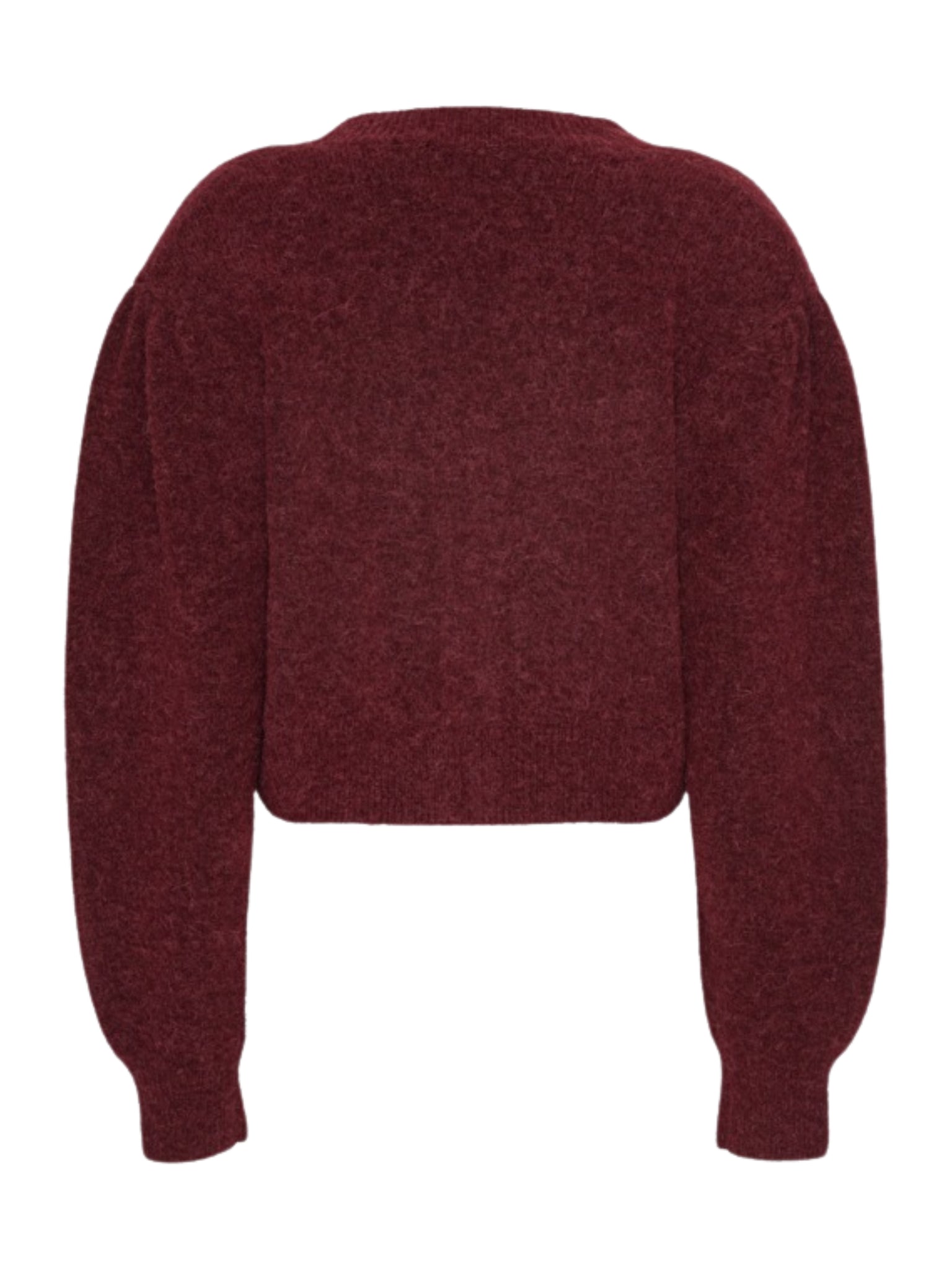 Cozy elegance meets modern design in the Knit Puff Sleeve Cardigan in Zinfandel by ROTATE Birger Christensen. Featuring soft, sustainable fibers and a stylish puff sleeve silhouette, this cardigan is your go-to layering piece for effortless luxury.