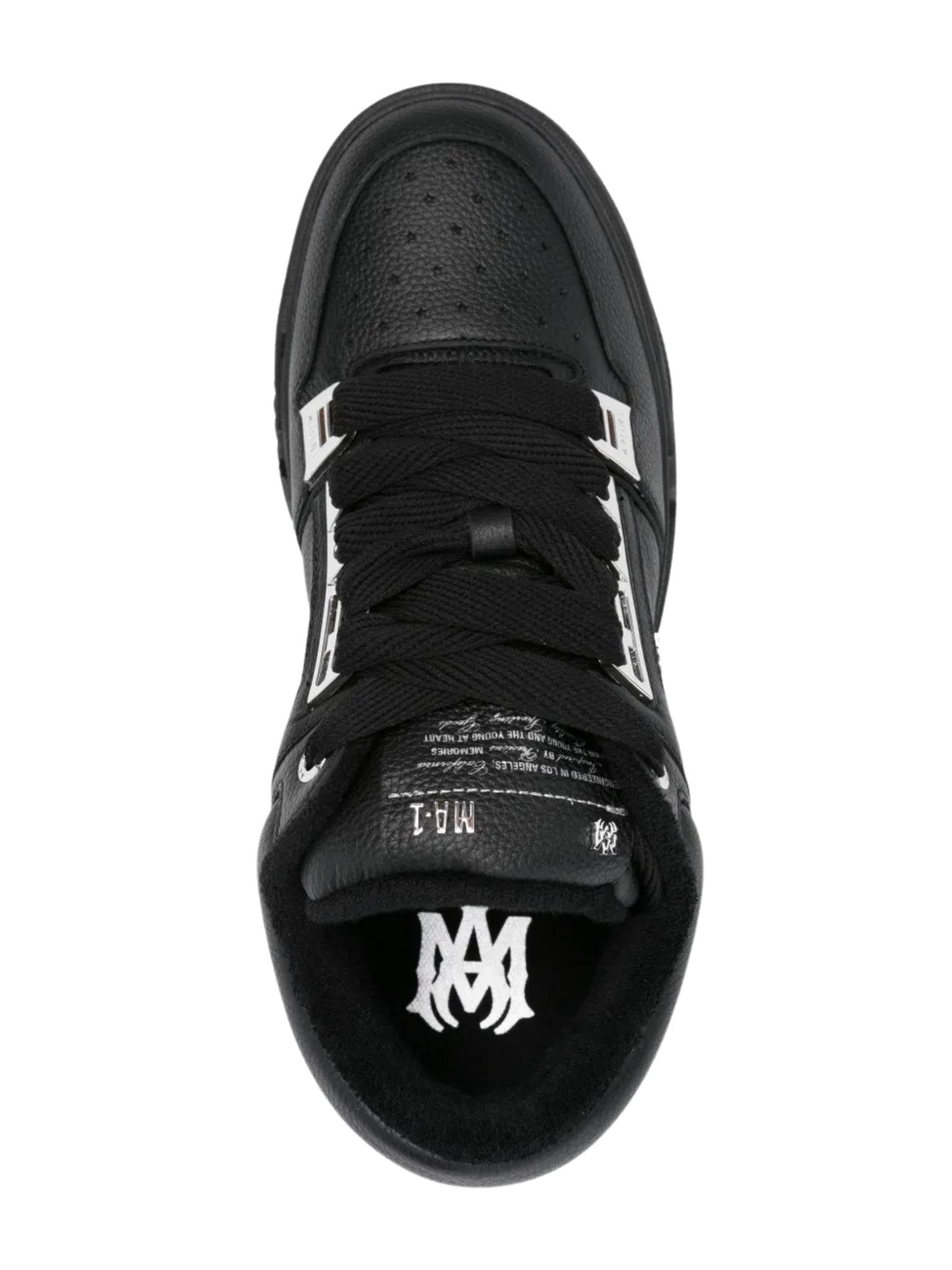 Where classic court style meets luxury edge. The AMIRI Metallic MA-1 Sneaker in black features statement metallic finishes, MA icon hardware, and bold branding for a standout streetwear aesthetic.