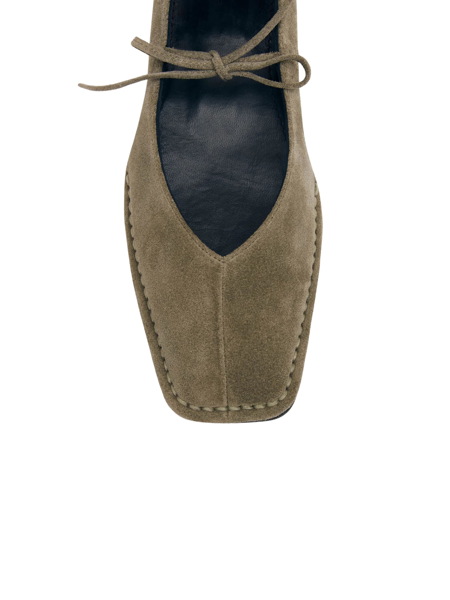 Timeless with a twist. The Sway Ballet Flats by ALOHAS return this season in soft khaki suede, combining classic elegance with fresh, everyday versatility.