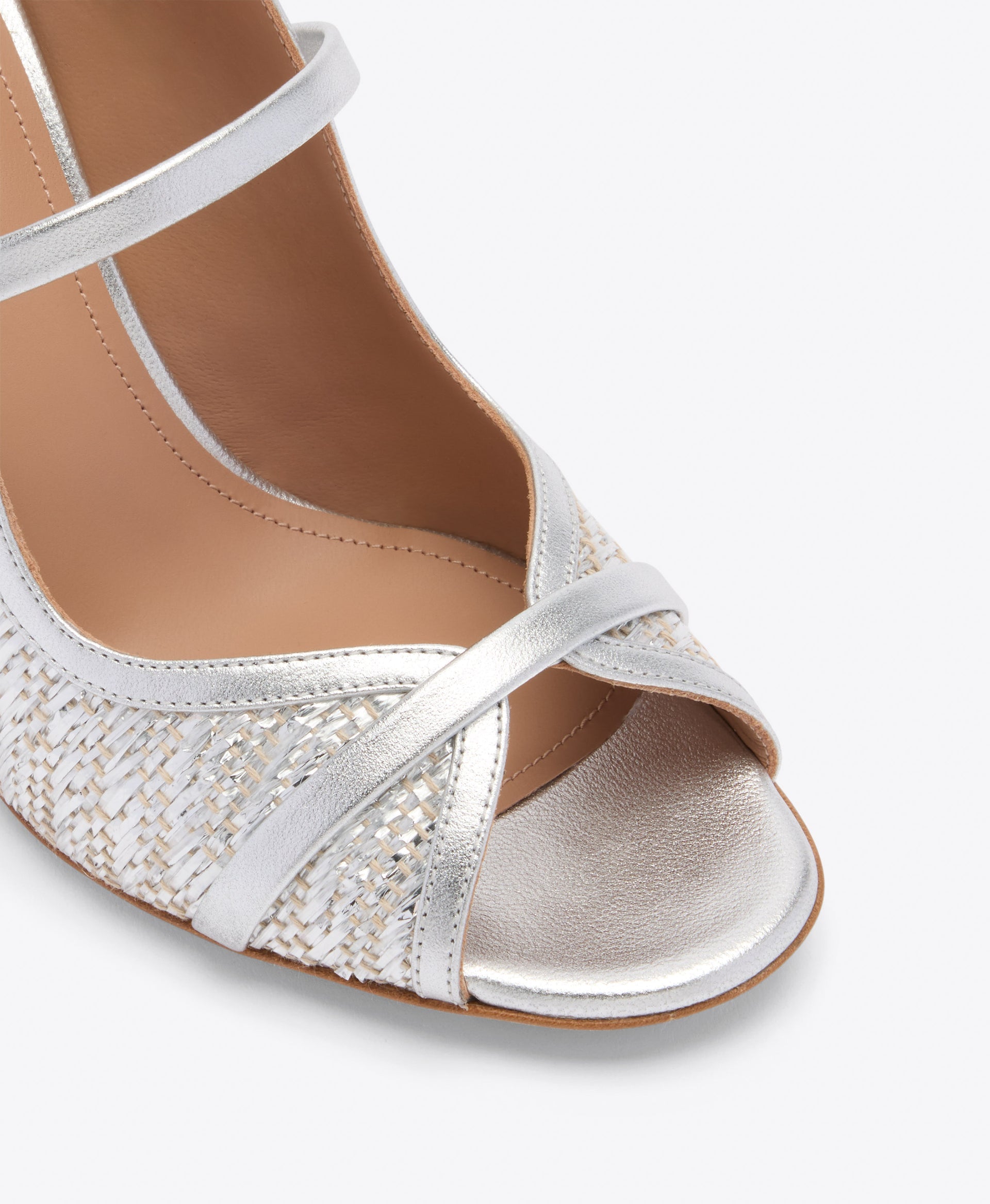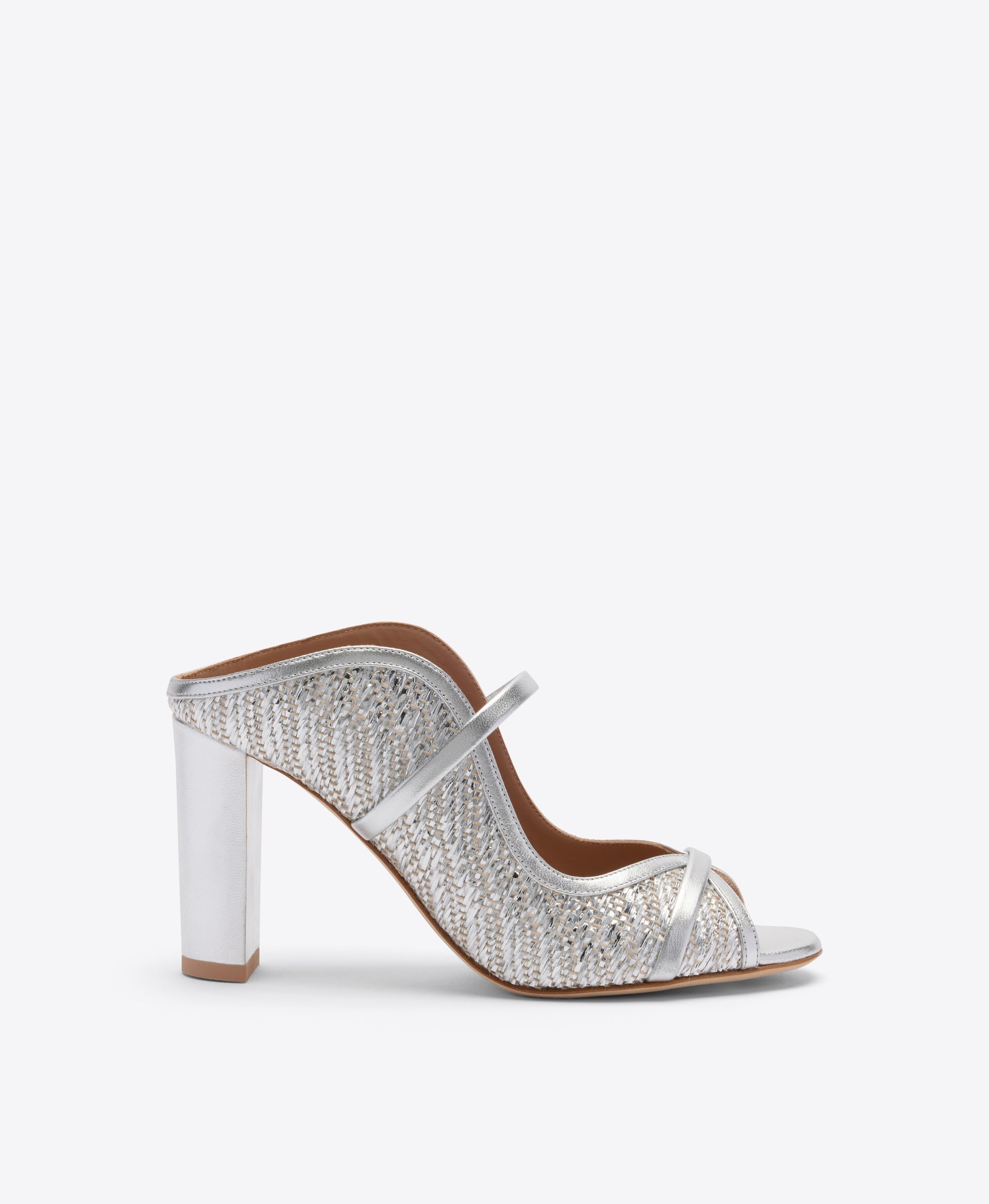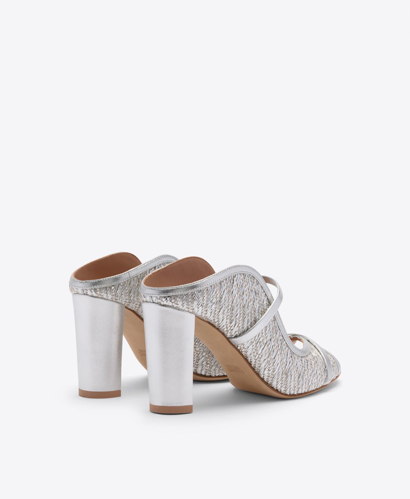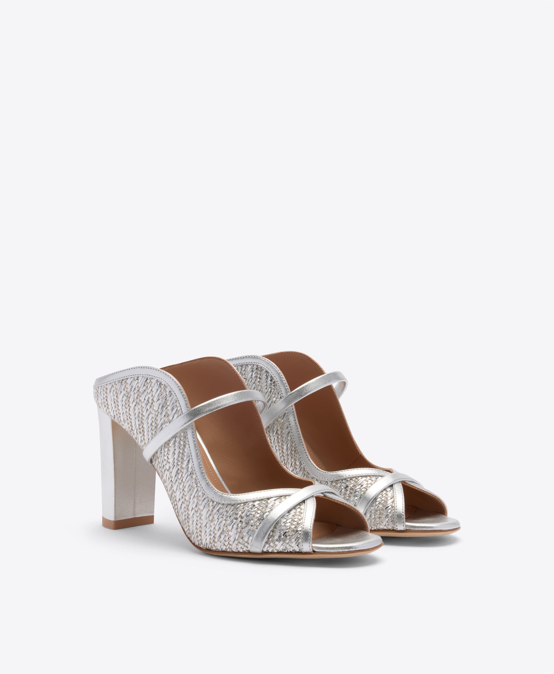 A study in sculptural simplicity, the Norah 85 mule is crafted in silver metallic raffia with tonal Nappa leather trims. Defined by clean double straps and an 85mm block heel, this minimalist yet modern sandal brings elevated style and impact to every step.