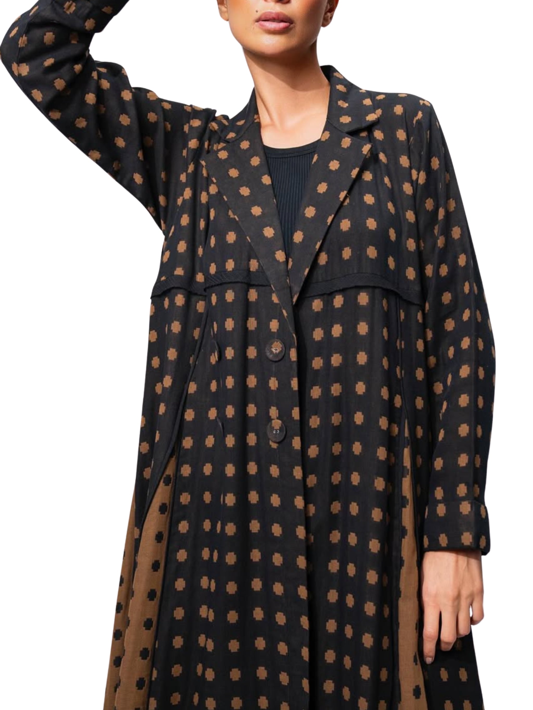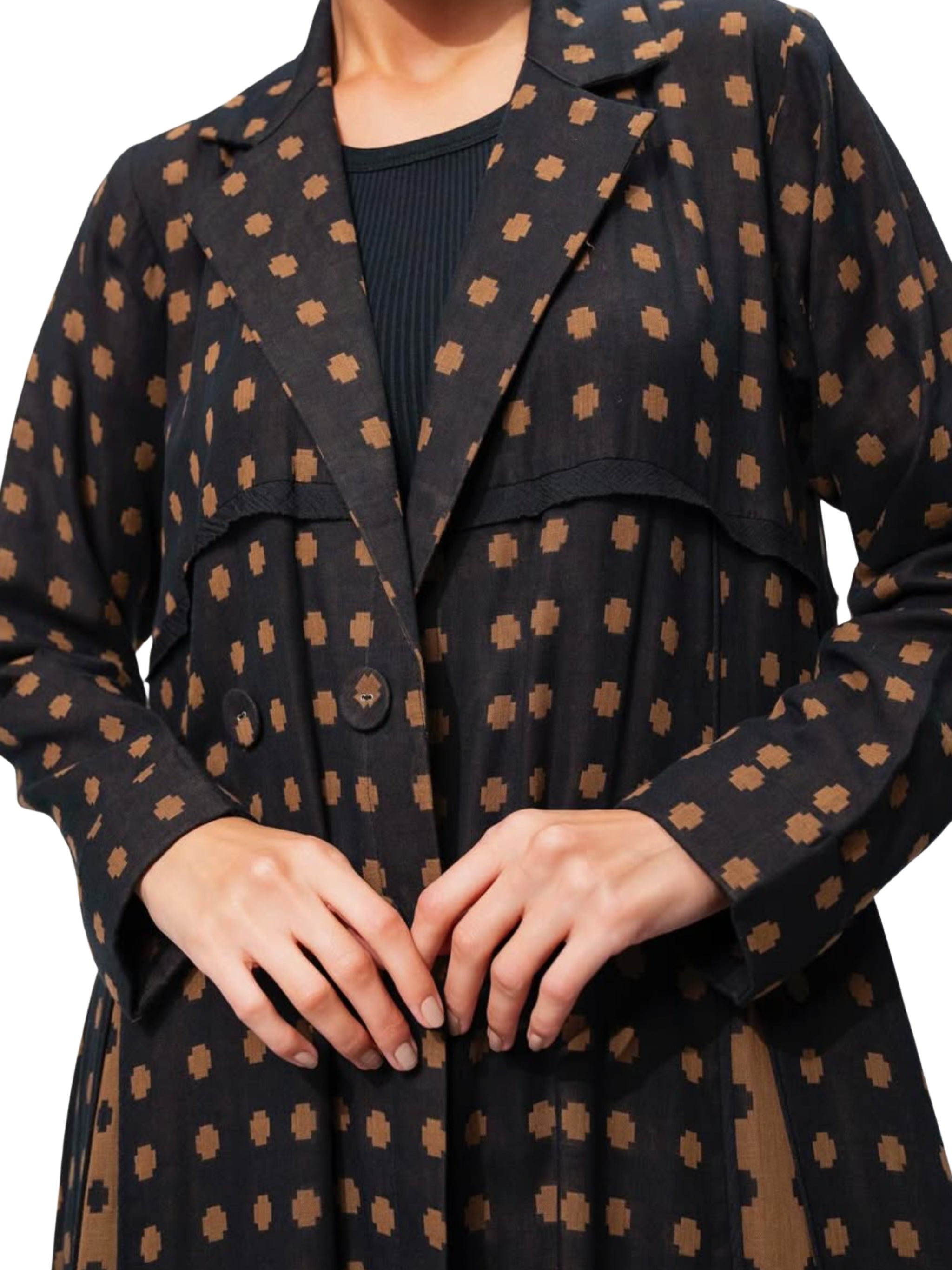 عباية سوداء أنيقة من ميماش صُمّمت لتجسّد الأناقة الكلاسيكية الخالدة والاحتشام السلس. تتميّز بقصّتها الانسيابية ولونها الأسود الكلاسيكي، لتمنح إطلالة راقية تناسب المناسبات الرفيعة والإطلالات اليومية الأنيقة.