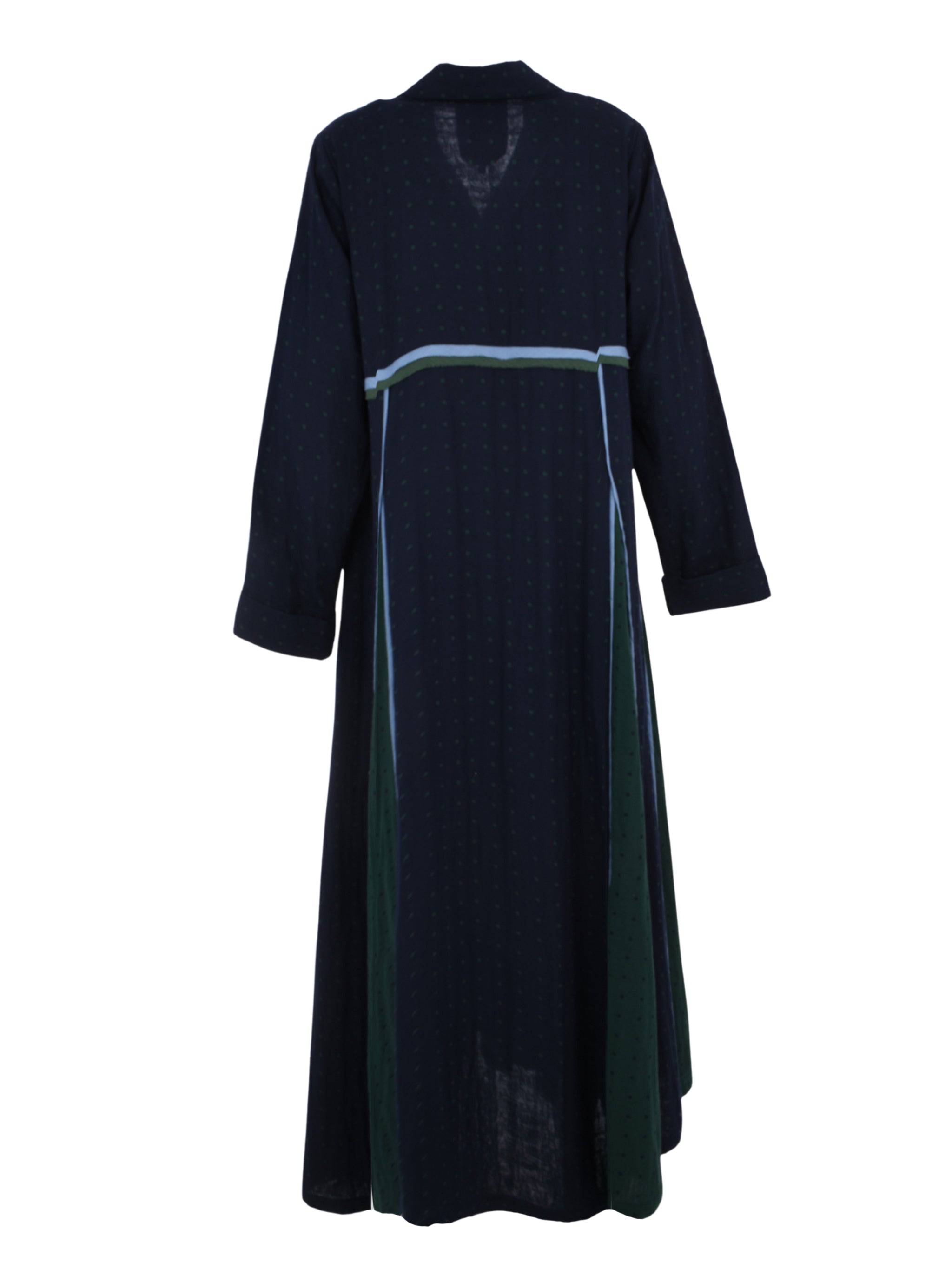 A refined blue abaya by MEMASH, designed to reflect modern elegance with a sophisticated tone. Its flowing silhouette and graceful drape embody contemporary Saudi luxury with effortless charm.