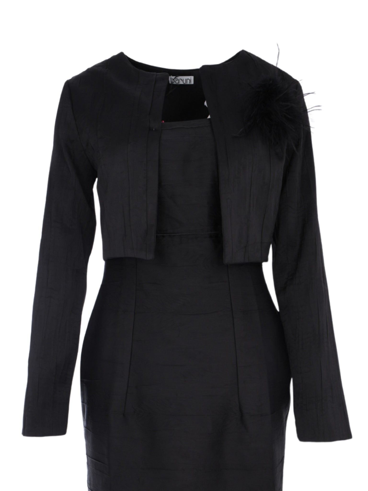 Step out in style with the BARUNI Rawand Dress-Jacket Set, crafted from a luxurious wrinkled rayon blend with soft lining, offering a sophisticated layered look—perfect for Saudi Arabia’s fashion-savvy shoppers.