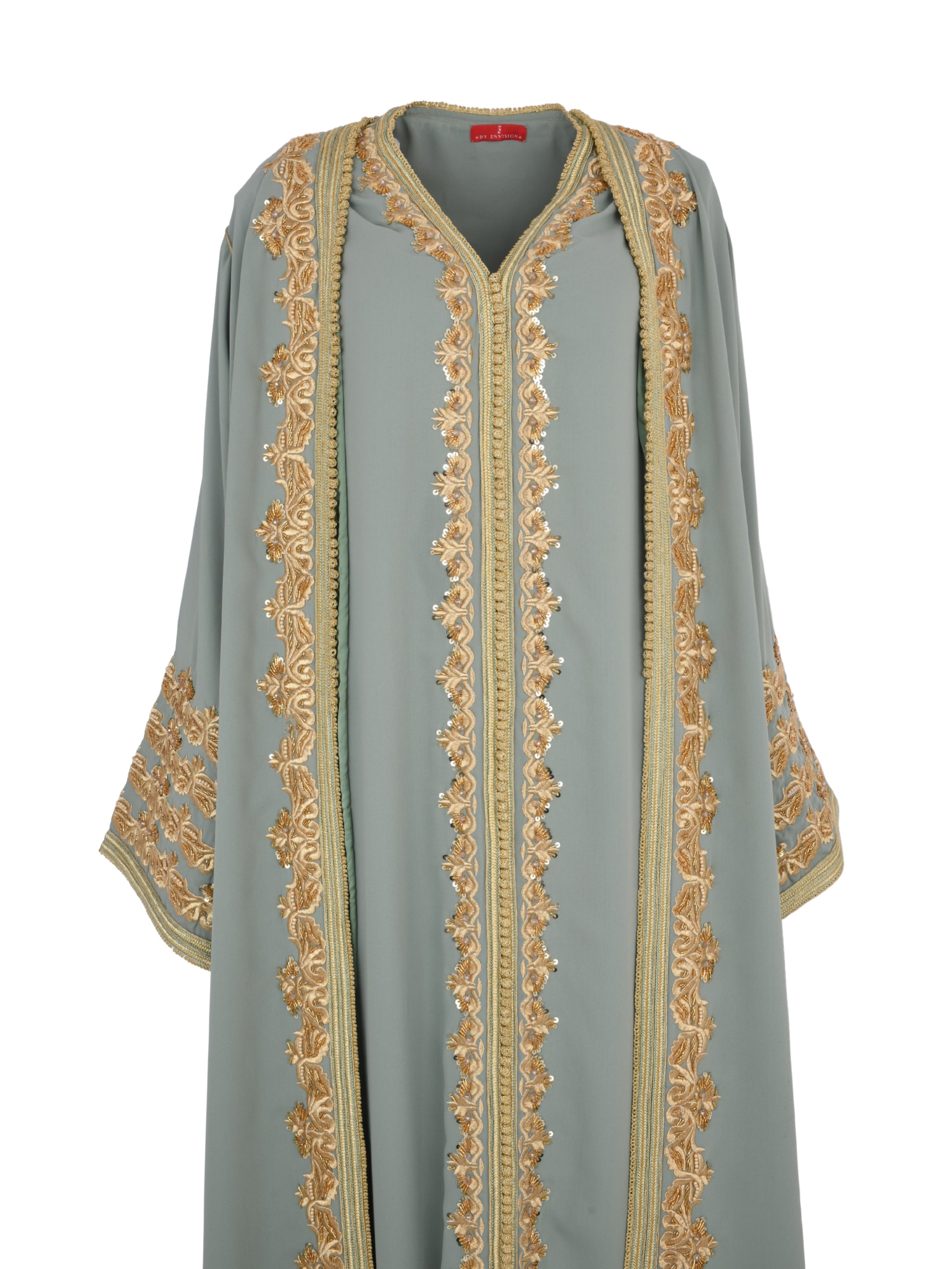 تصميم قفطان مكوّن من قطعتين يجسّد الأناقة السلسة والرقي العصري. تم تصميمه ليمنحك مرونة في التنسيق وانسيابية في الحركة، حيث يقدّم هذا القفطان باللون الأخضر إطلالة متقنة تناسب المناسبات الراقية والتجمعات المميزة.