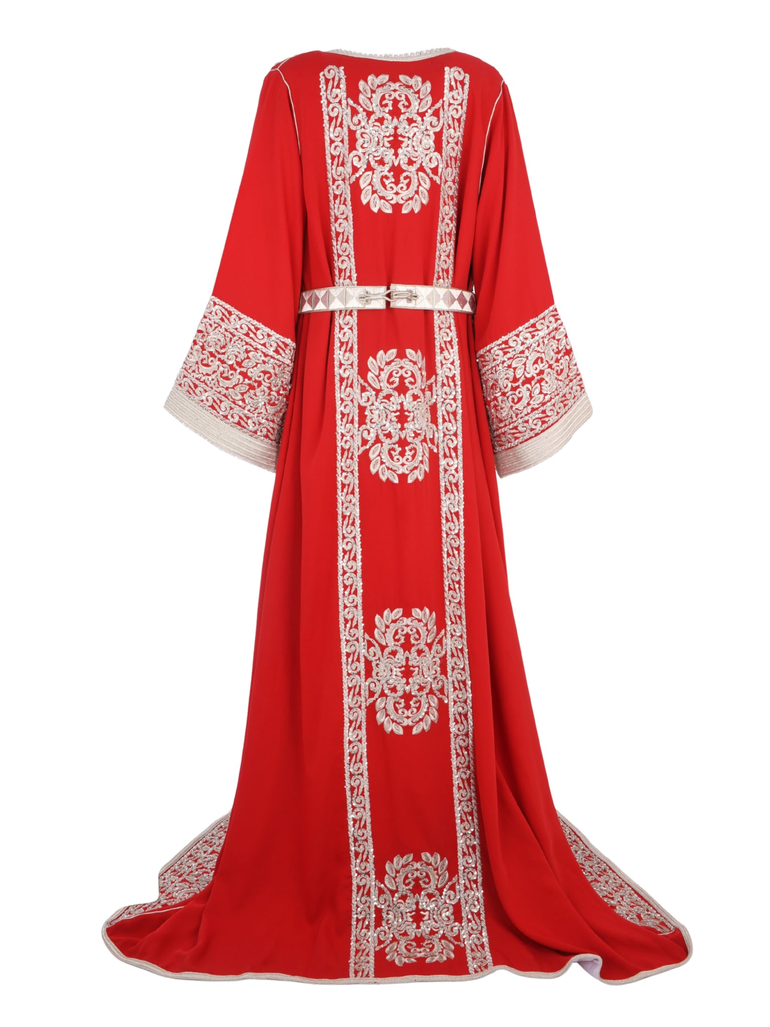• قفطان أحمر قطعتين بتصميم راقٍ وأنيق