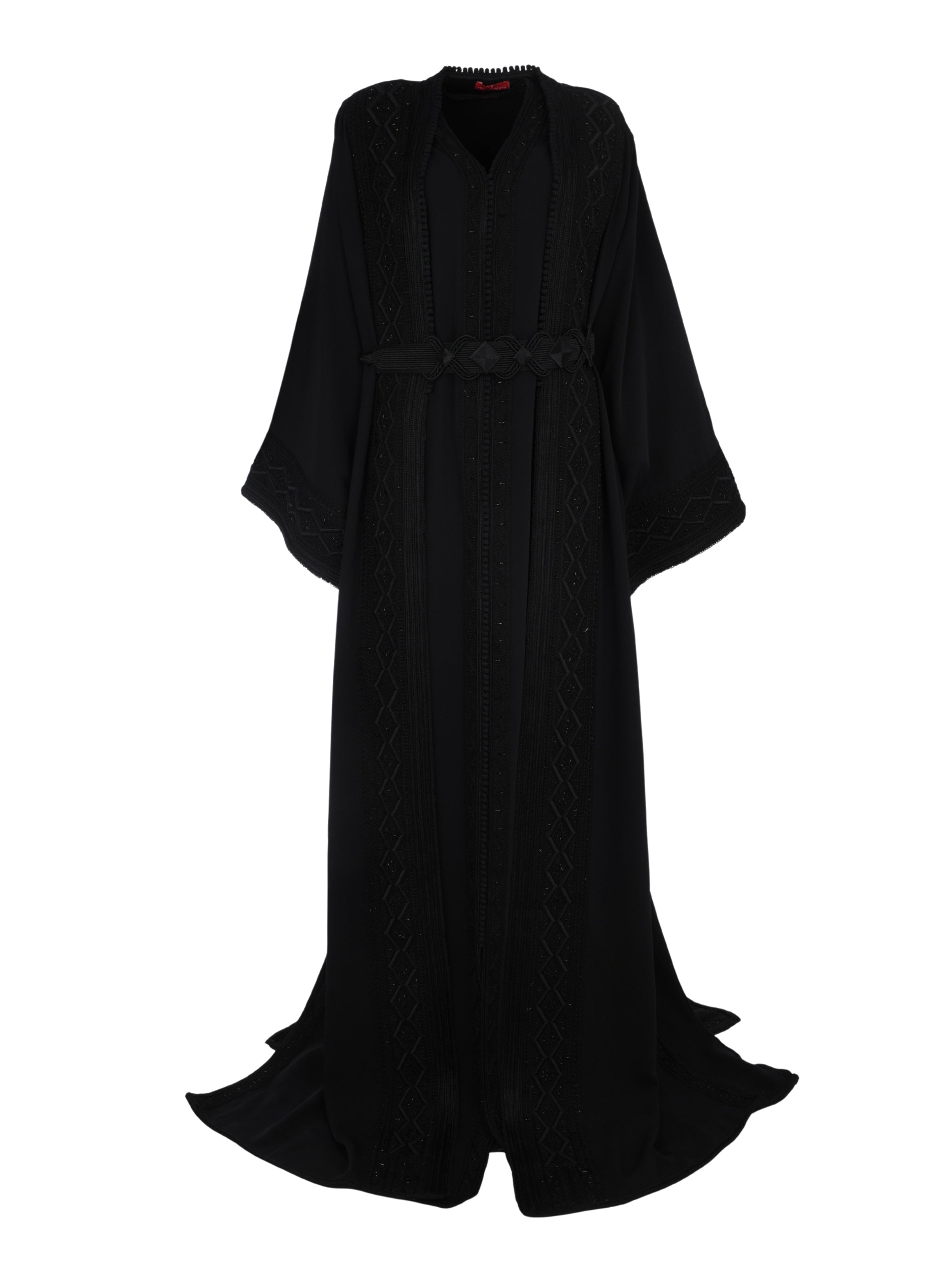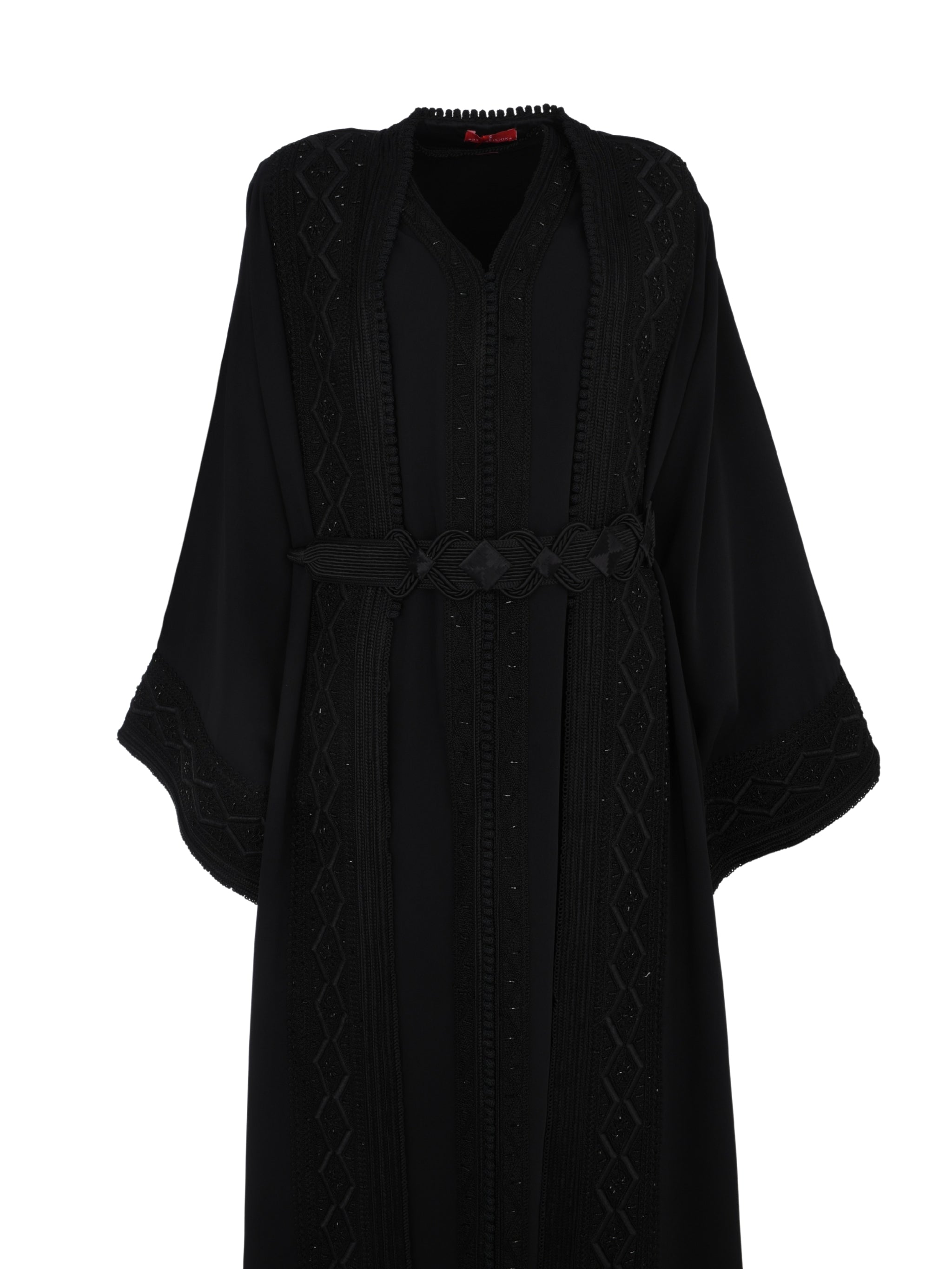 • قفطان أسود قطعتين بتصميم راقٍ وأنيق