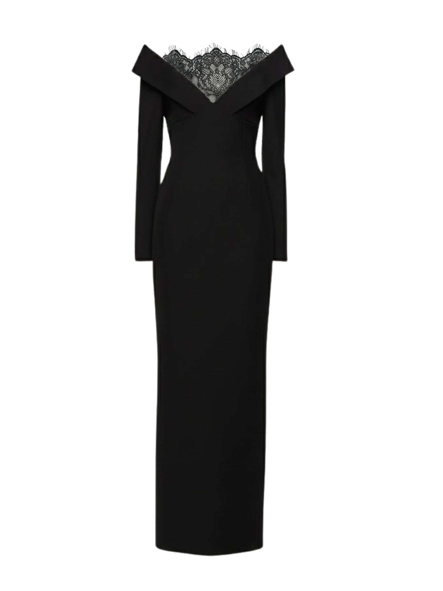 Timeless elegance meets subtle allure in the Lace Insert Crepe Column Gown by Roland Mouret in classic Black. Defined by a wide-shoulder neckline and a delicate scalloped lace insert, this sleek column silhouette embodies refined sophistication with a sultry edge perfect for statement evenings in Saudi Arabia.