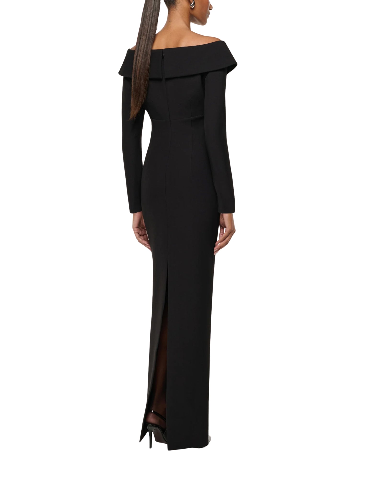• Sleek column gown in luxurious black crepe