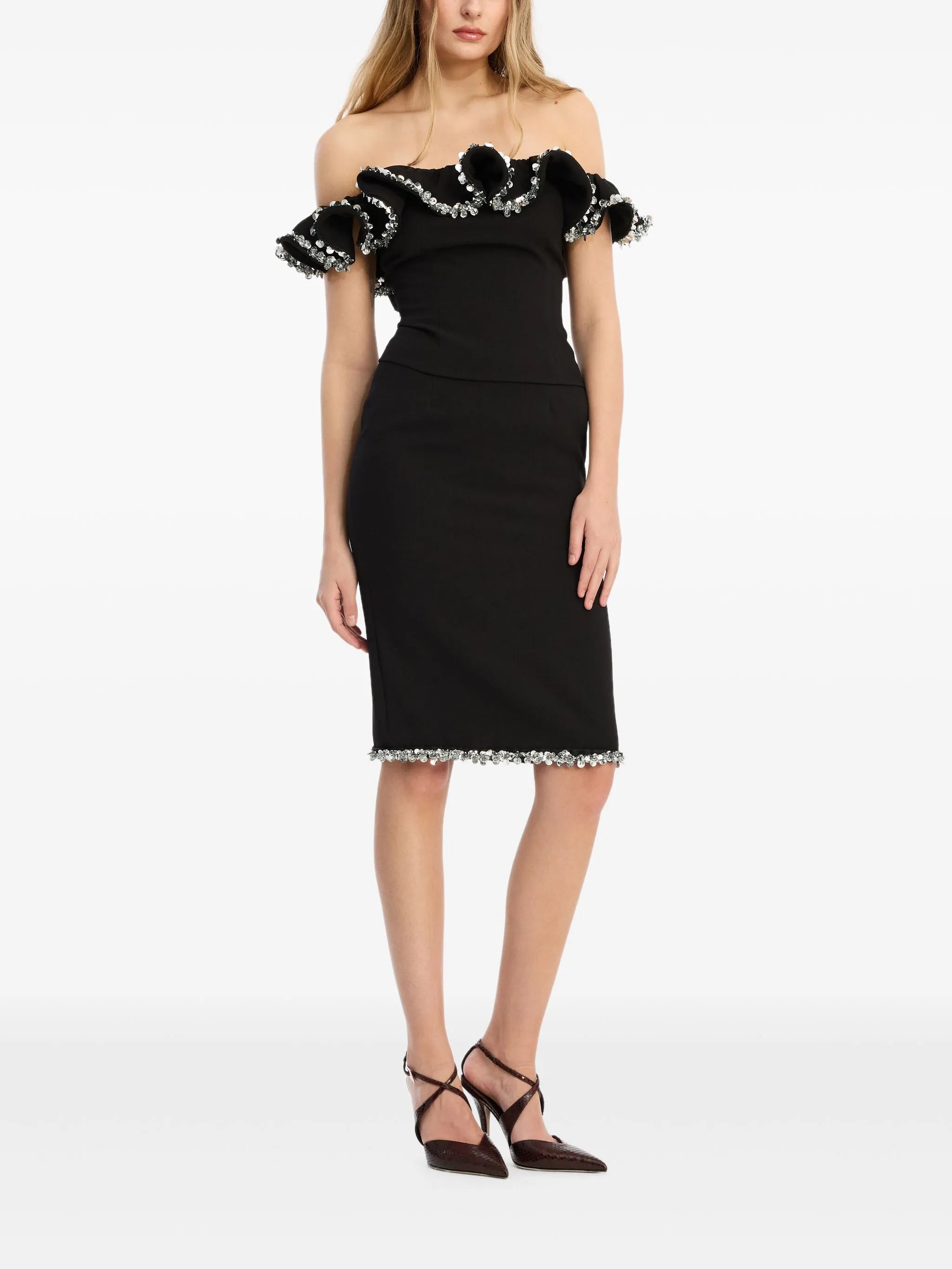 A statement piece with modern elegance, this black crepe ruffle top by ROTATE Birger Christensen blends structured tailoring with glamorous detailing perfect for evening occasions and refined celebrations.