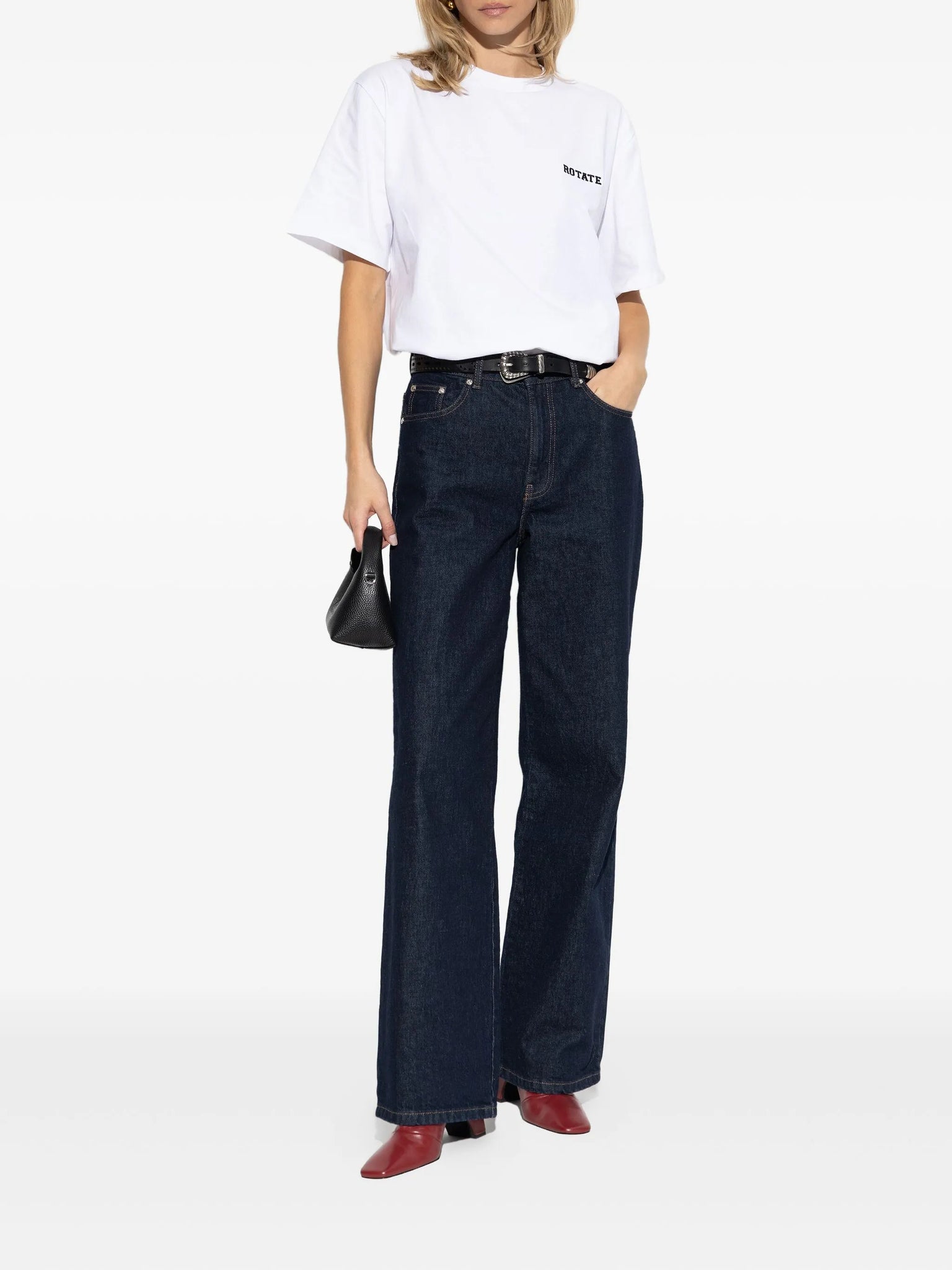 Subtle embroidered ROTATE logo on the front left