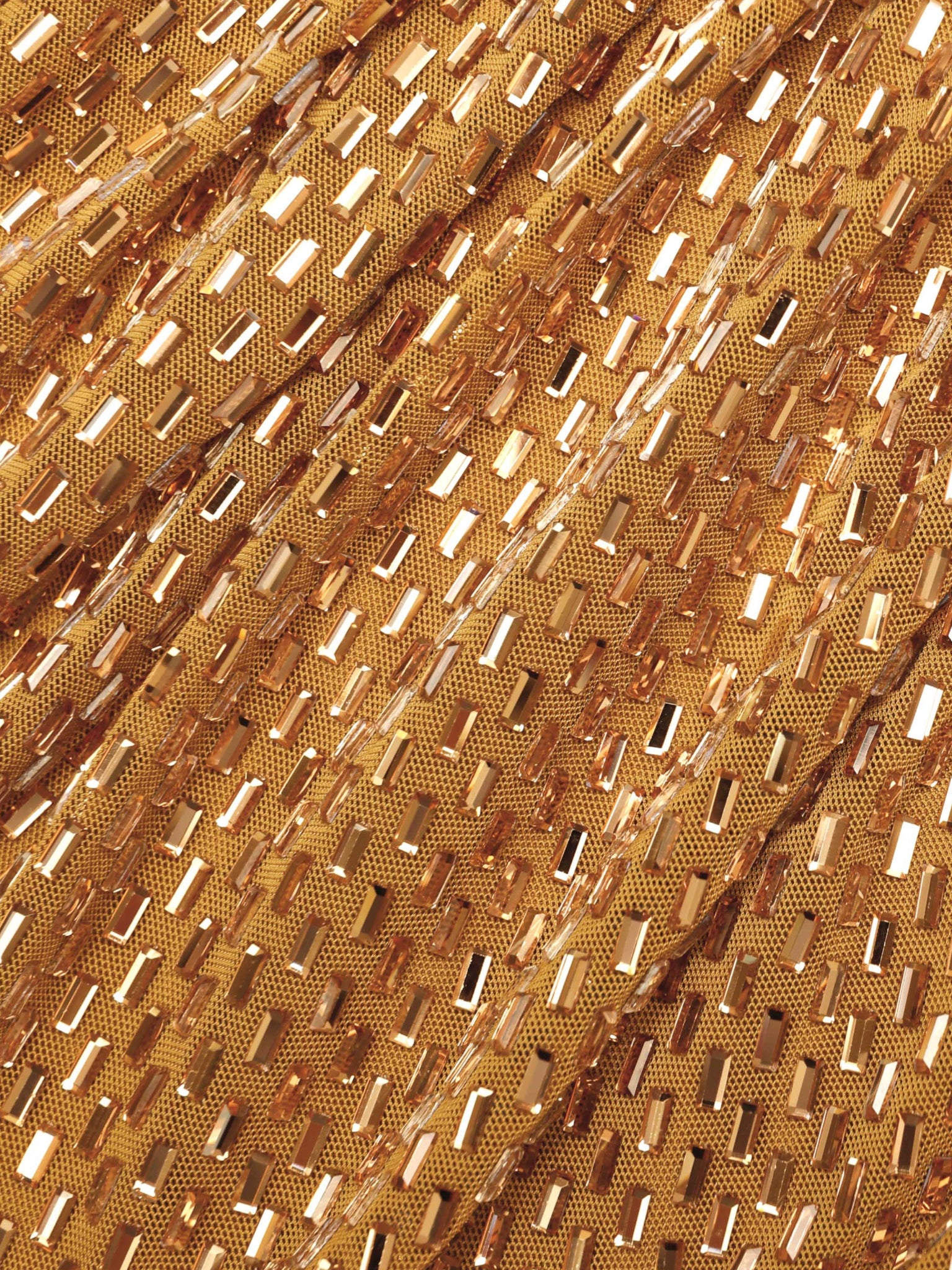 Shine at every occasion in this gold rhinestone drape midi dress by SELF PORTRAIT. Asymmetrical neckline and gathering at the waist create a flattering silhouette, while sparkling rhinestones bring a touch of glamour, perfect for cocktail parties or evening events.