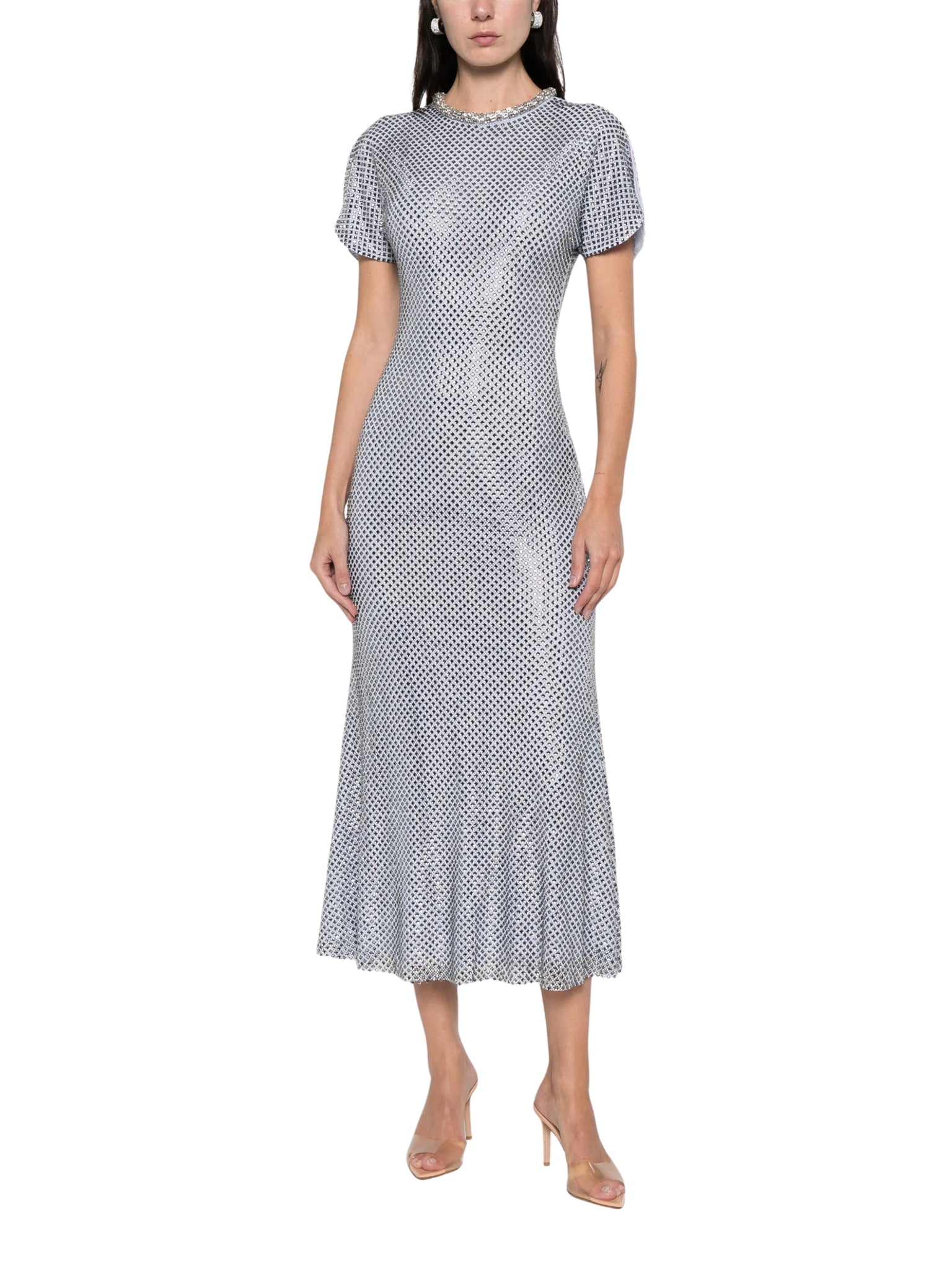 BLUE RHINESTONE MESH MIDI DRESS
