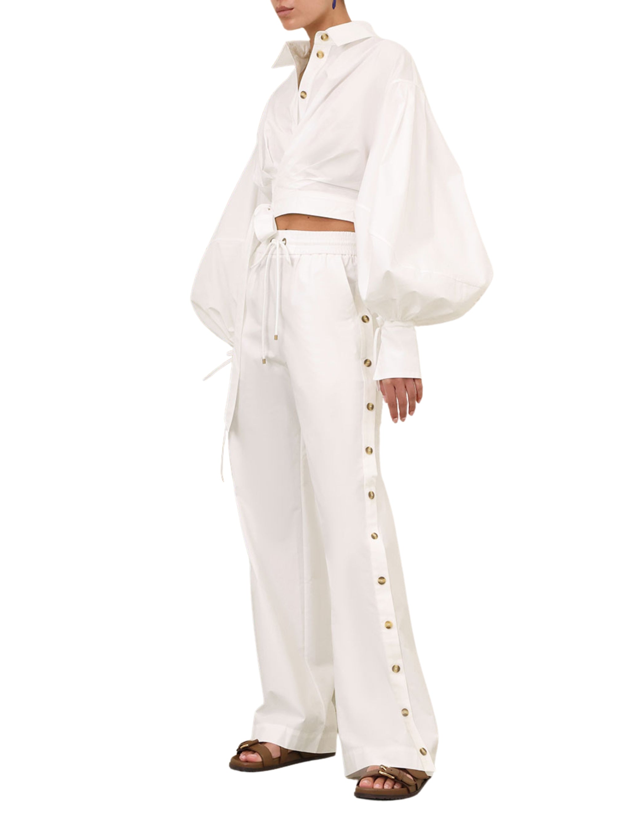 The Rebellion Poplin Button Pant by Zimmerman blends classic tailoring with modern comfort. Crafted from 100% cotton, these pants offer a structured yet breathable fit ideal for chic daytime looks, polished office styling, and refined casual fashion in Saudi Arabia.