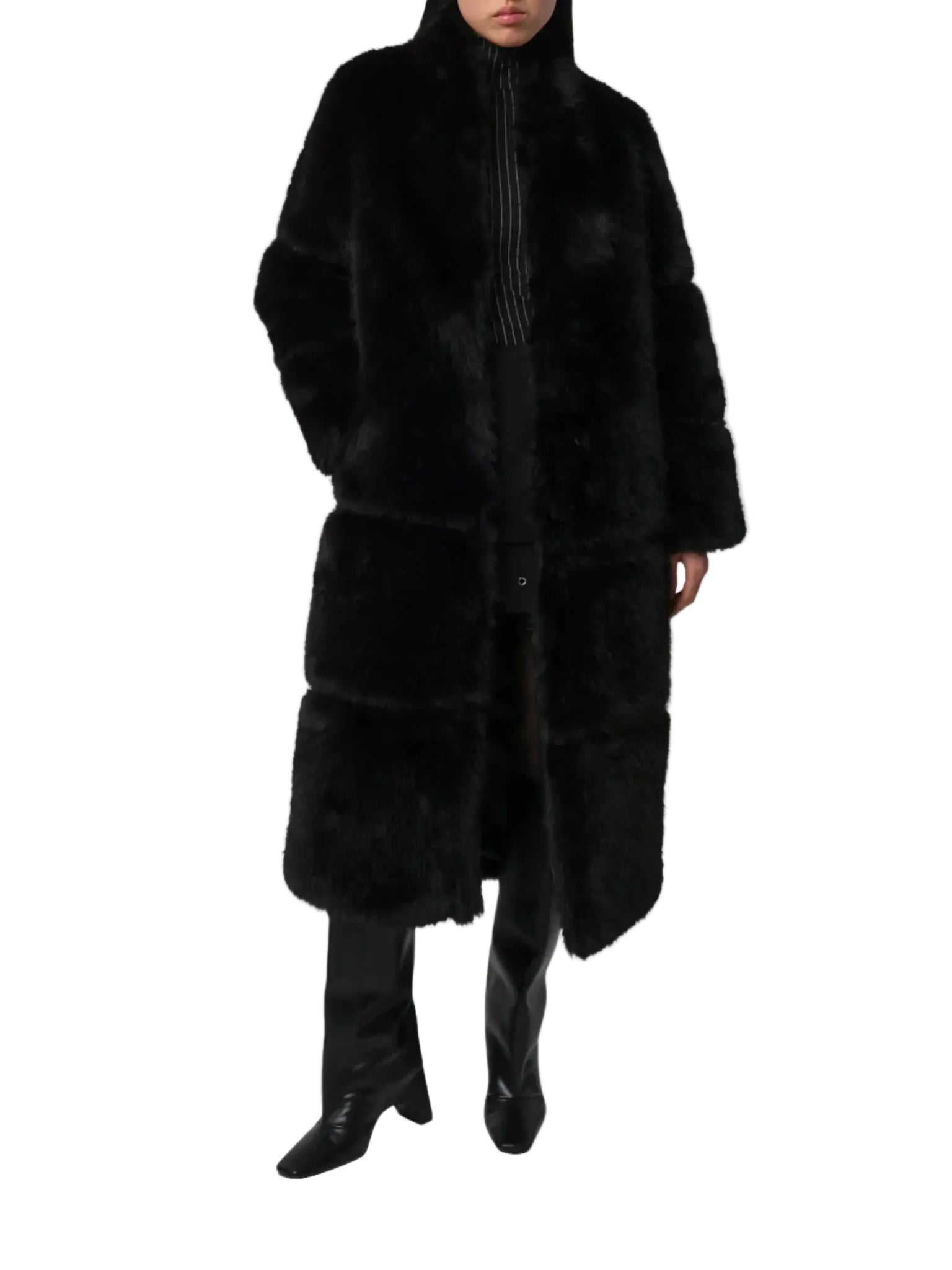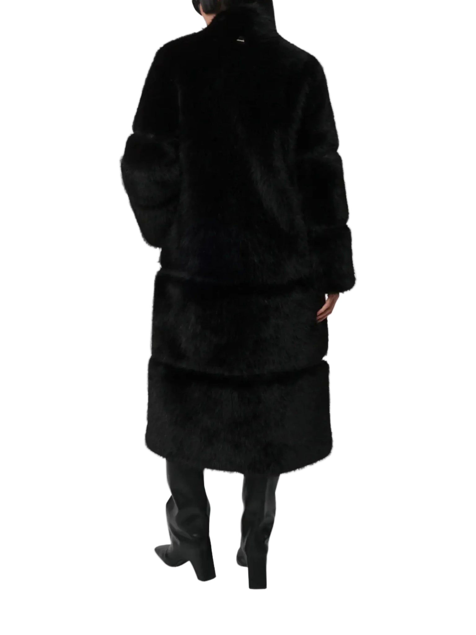 Refined and statement-making, the Sylke Sable Coat brings elevated warmth to your winter wardrobe. Crafted from recycled sable faux fur and accented with SANS leather paneling, this coat balances modern luxury with a conscious approach to fashion.