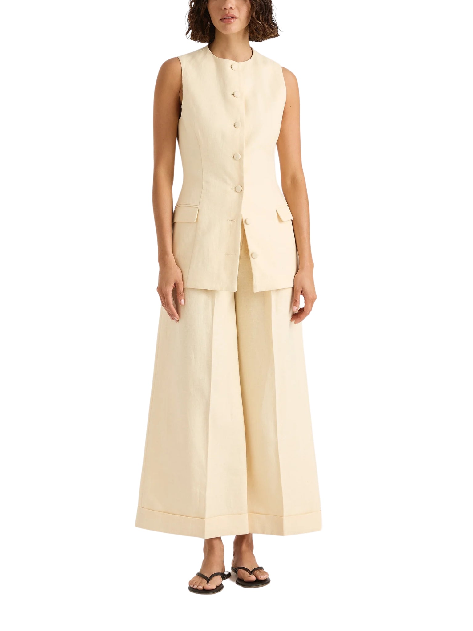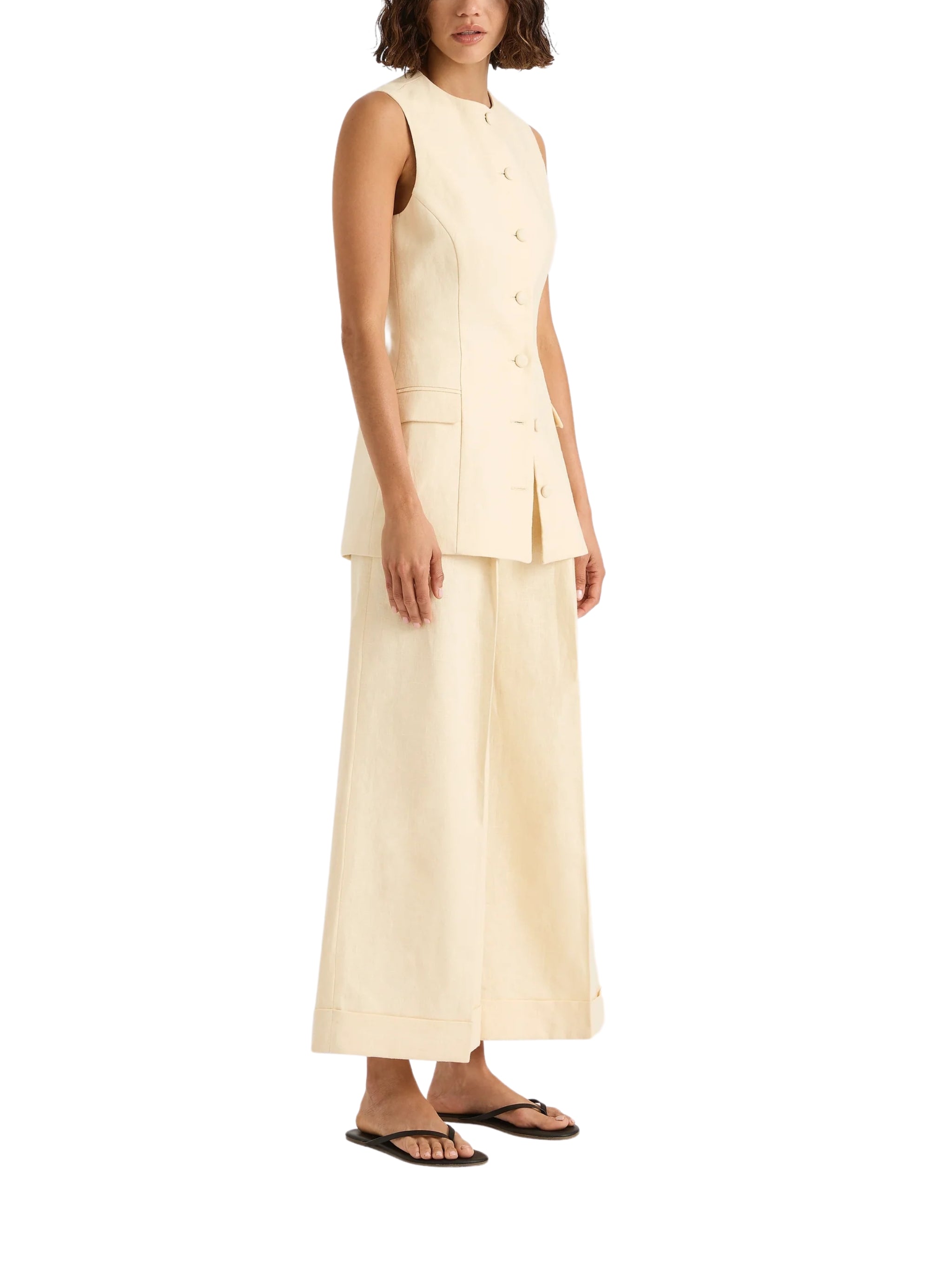 Add a touch of relaxed sophistication to your wardrobe with the Jane Vest, crafted from a breathable blend of 100% linen and 100% cotton. Perfect for layering or wearing solo during warm days in Riyadh, Jeddah, and beyond.