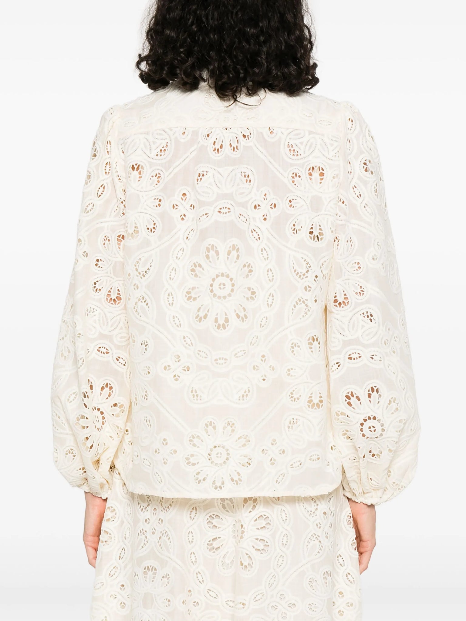 A modern take on timeless femininity, the Rhiannon Embroidered Blouse by Zimmermann showcases delicate craftsmanship through floral cut-out embroidery. This lightweight, romantic piece is a standout addition to elegant daywear and resort-inspired looks—tailored for the discerning Saudi fashion connoisseur.