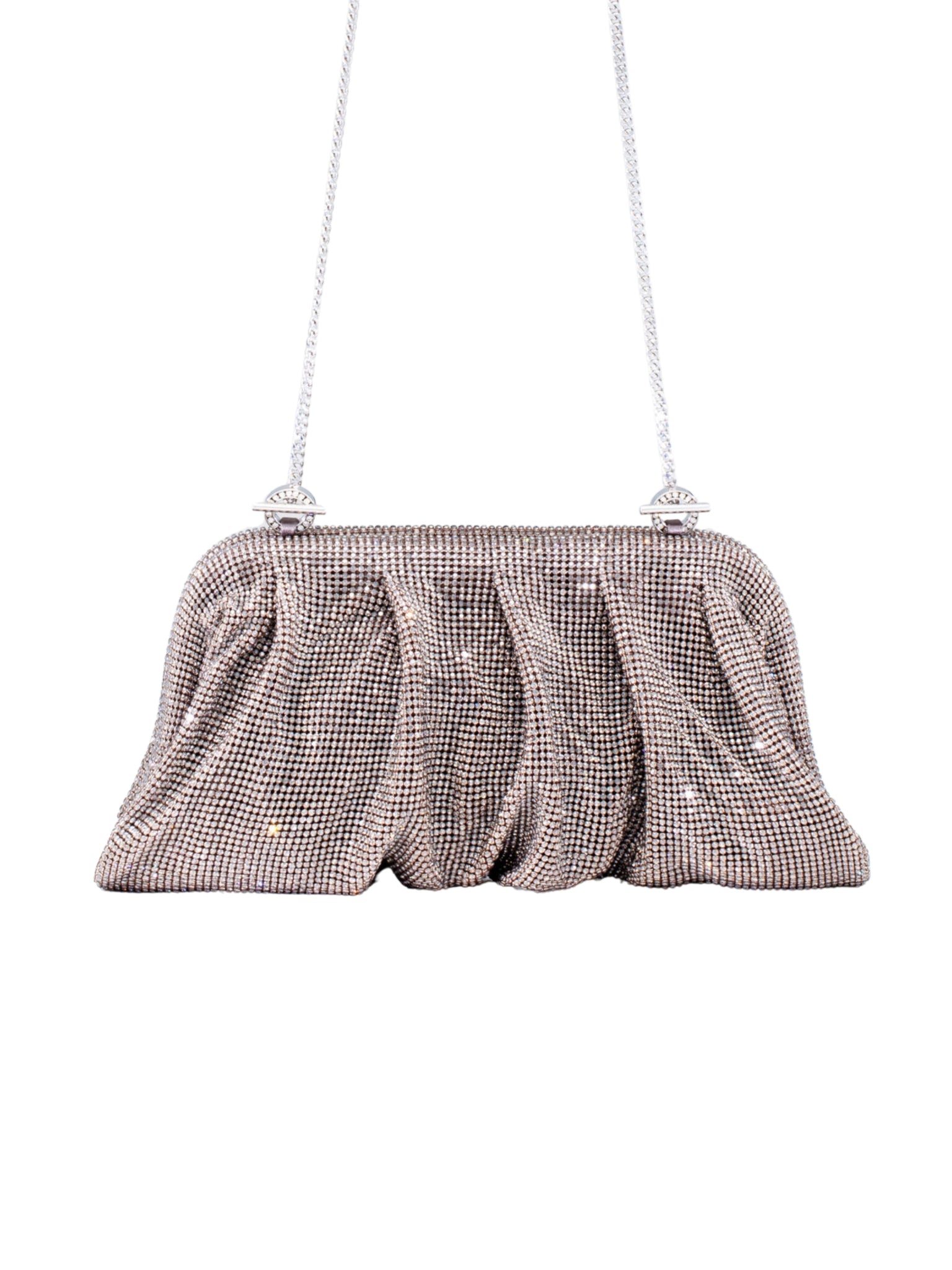 Sculptural evening clutch with a radiant, silver-toned finish