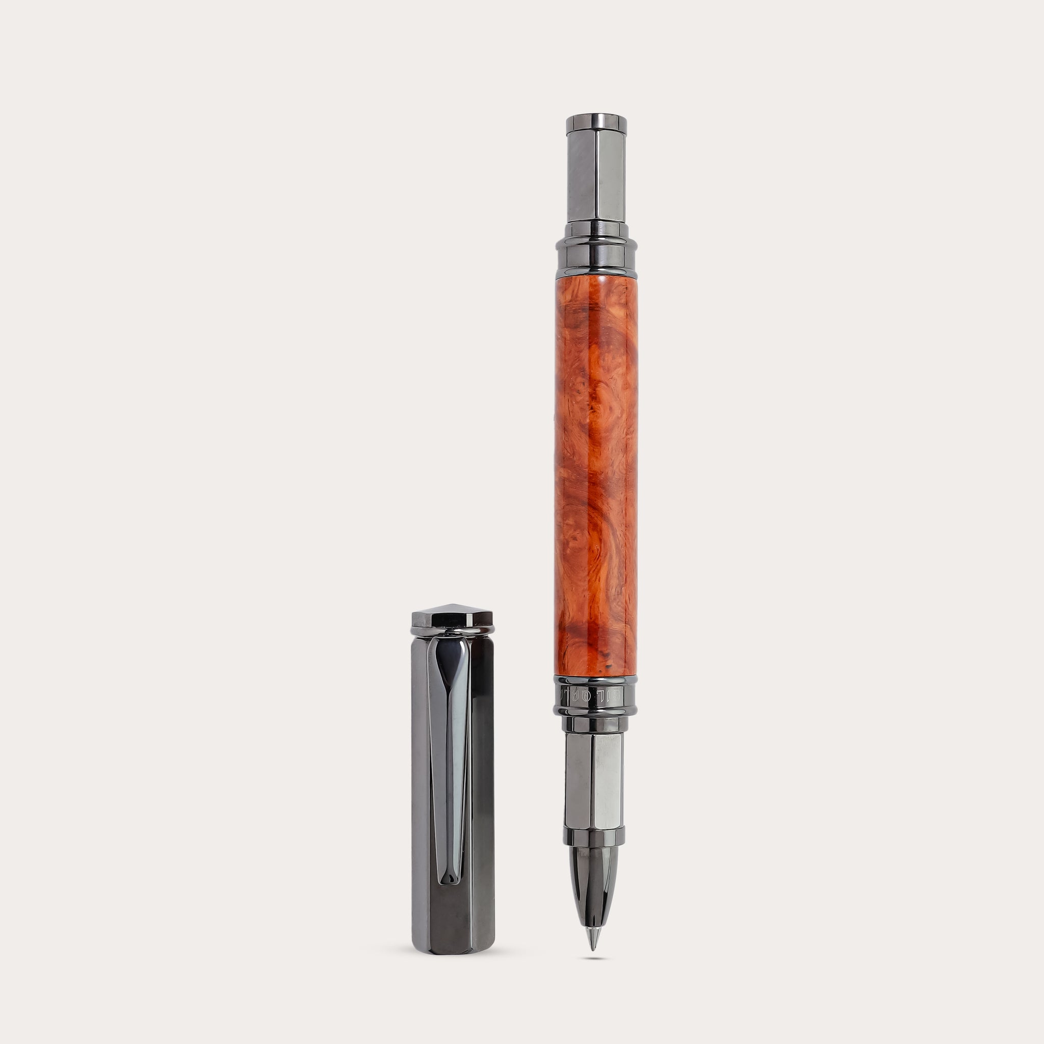 دمجٌ راقٍ بين الحجر الطبيعي والدقة العصرية، يعكس هذا القلم المصنوع يدويًا من بِل قلم ذوقًا رفيعًا وأناقة تنفيذية مميزة. صُنع من حجر المالاكيت الطبيعي ومُزود بتفاصيل فولاذية مطلية بلون تيتانيوم رمادي، ليُلبي تطلعات عشاق أدوات الكتابة الفاخرة في المملكة العربية السعودية بلمسة عصرية متجددة.