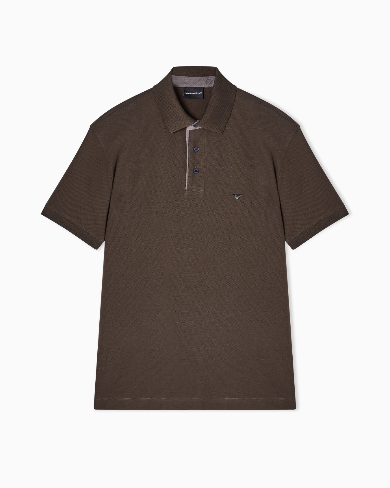 Elevate your everyday style with the Emporio Armani Regular Fit Piqué Polo Shirt. Crafted from soft cotton piqué, this polo combines comfort and understated elegance, featuring the iconic micro-eagle embroidery for a subtle designer touch perfect for casual or smart-casual occasions in Saudi Arabia.