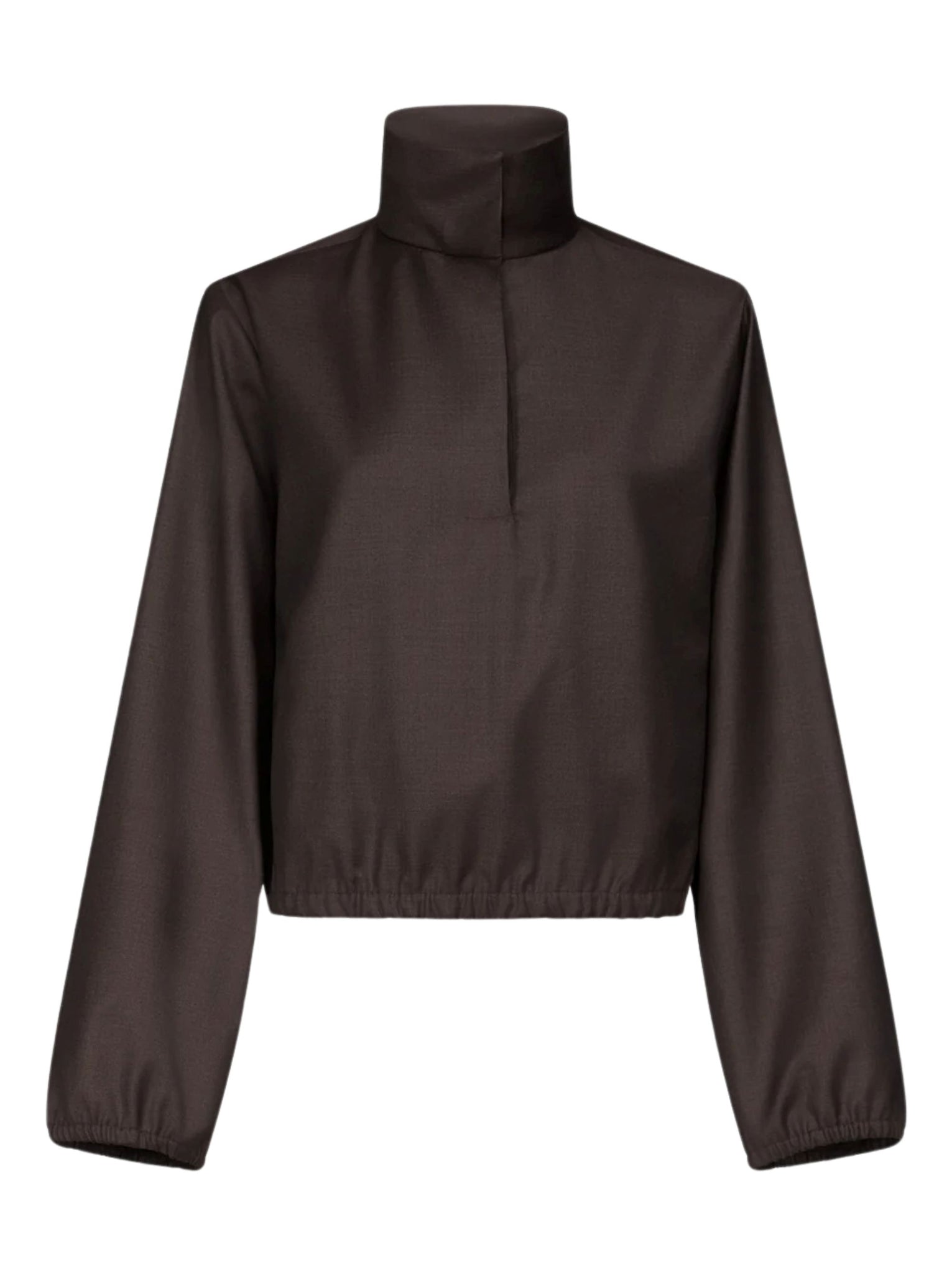 Structured yet soft, the Zyla Collar Stand Blouse by Loulou de Saison redefines contemporary elegance. Crafted in luxurious virgin wool and finished in a rich grizzly shade, it’s a refined essential for the modern Saudi wardrobe.
