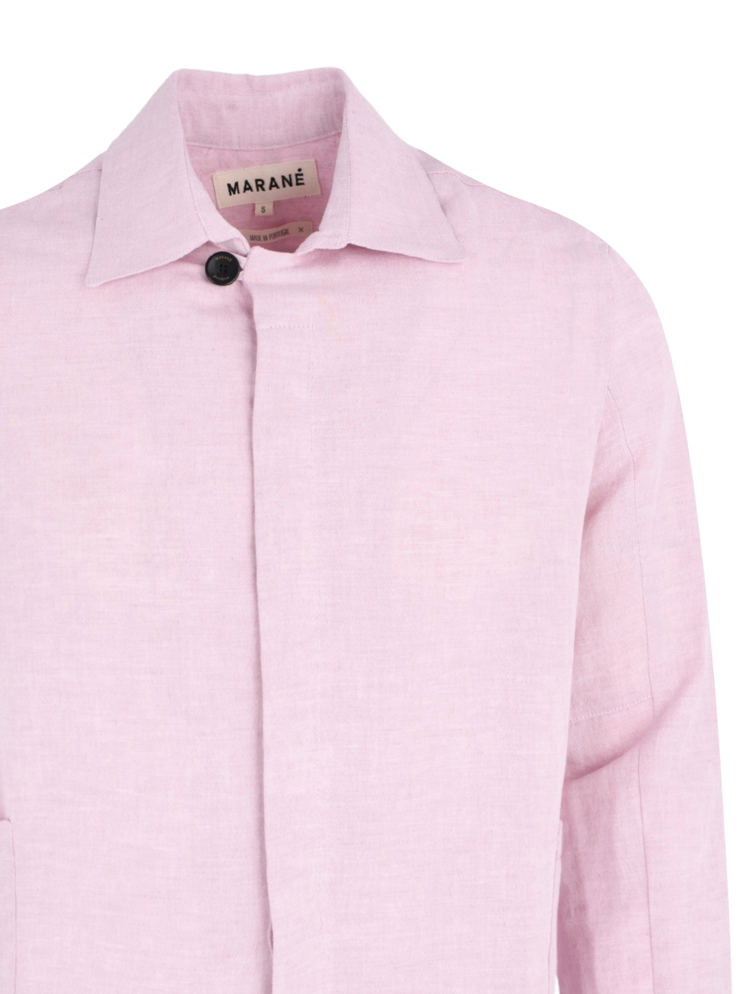 Elevate your wardrobe with the MARANE Linen Jacket in a soft dusty pink shade. Crafted from a breathable cotton-linen blend, this jacket is the perfect lightweight layer for sophisticated, warm-weather style.