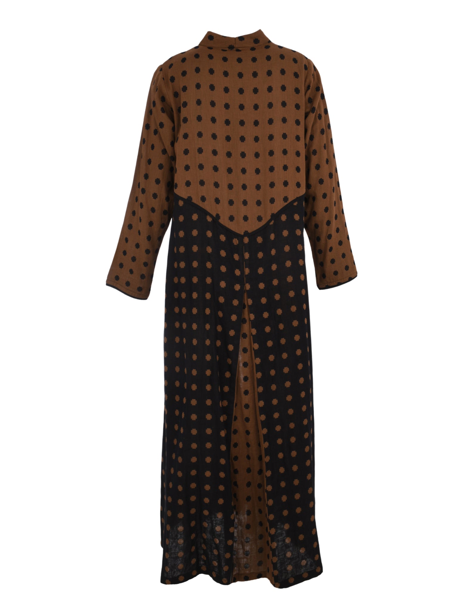 Timeless and elegant, the Abaya by MEMASH features a sophisticated light brown and black color combination. Designed for modesty with a modern touch, it is perfect for everyday wear or formal occasions in Saudi Arabia.