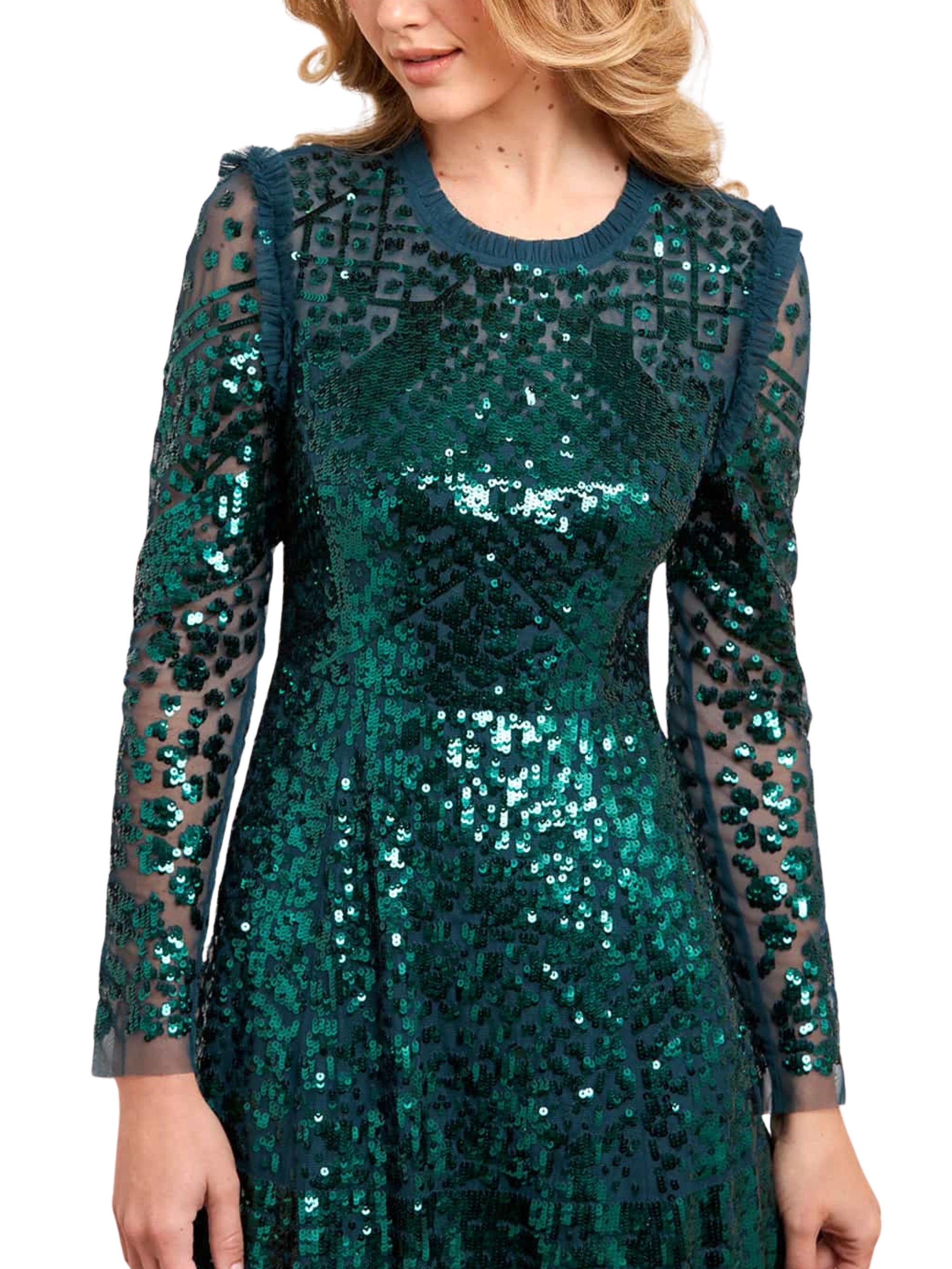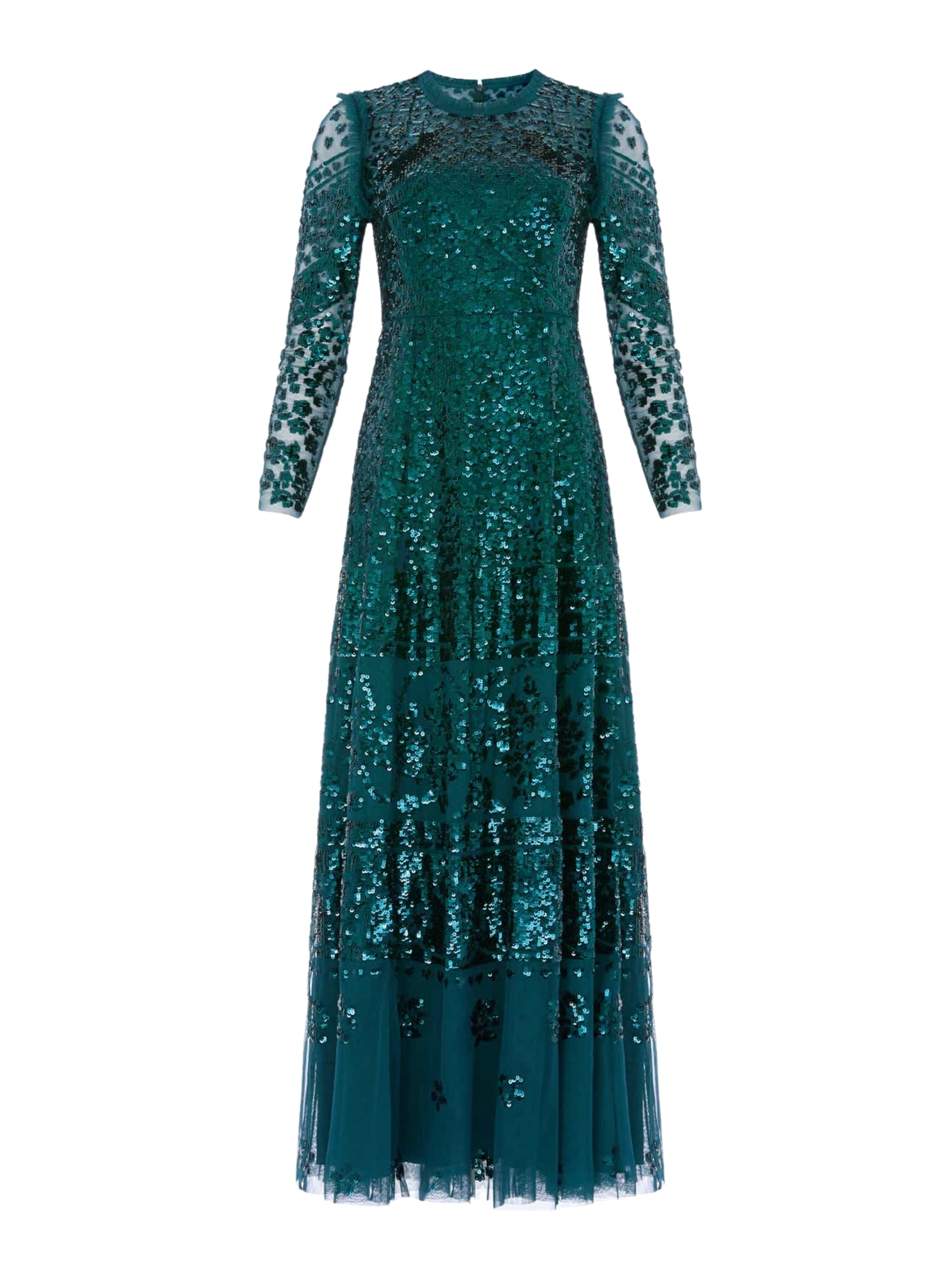 A timeless icon reimagined, the Aurora Gown by NEEDLE & THREAD returns in rich emerald green, adorned with shimmering floral embroidery for a truly glamorous evening statement in Saudi Arabia.