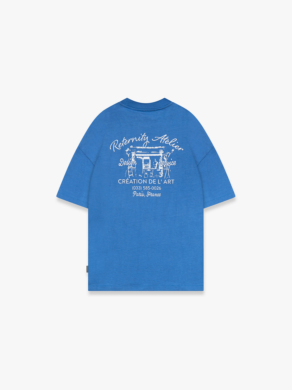 Inspired by the artistic spirit of the Parisian atelier, the DE L'ART T-Shirt in blue brings creativity to everyday wear. With its expressive artwork and soft, breathable cotton, this piece blends comfort with a modern aesthetic designed for effortless styling.