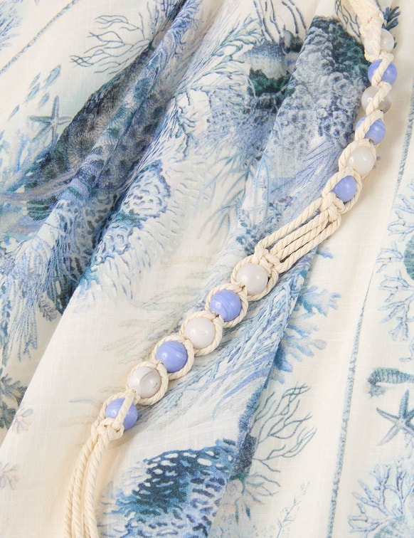 From the Resort Swim 2026 Collection, the Wanderlust A-Line Maxi Skirt in Blue Toile combines timeless elegance with relaxed resort style. Crafted from 100% cotton, this full-length skirt features a fitted waistband, pleated detailing, and a removable belt for versatile styling. Perfect for summer gatherings, beachside lunches, or elevated casual looks in Saudi Arabia, it pairs effortlessly with blouses, shirts, or resort tops for a refined luxury wardrobe.