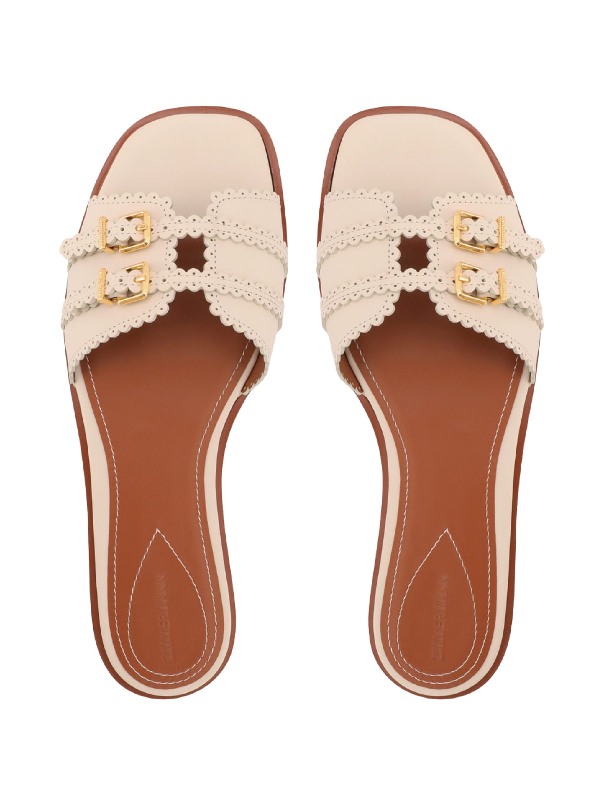 The Goldie Slide by Zimmermann is the epitome of relaxed luxury. Crafted from soft Vacchetta leather, this stylish slide offers effortless comfort and understated elegance ideal for chic, everyday wear in Saudi Arabia.