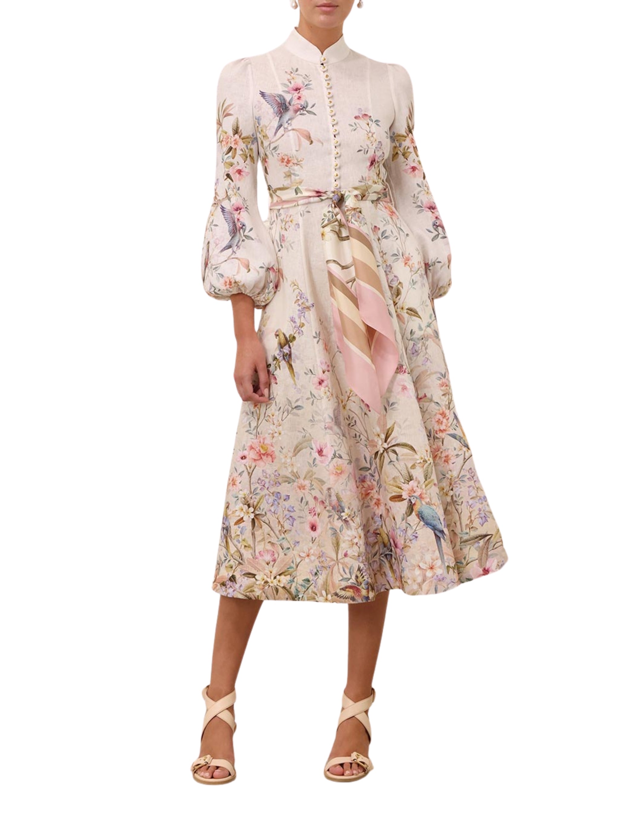 The Rebellion Button Midi Dress by Zimmerman embodies timeless elegance with effortless comfort. Crafted from 100% linen, this midi dress features a classic button-front design and a flattering silhouette perfect for refined daytime events, casual luxury outings, and chic Saudi summer styling.